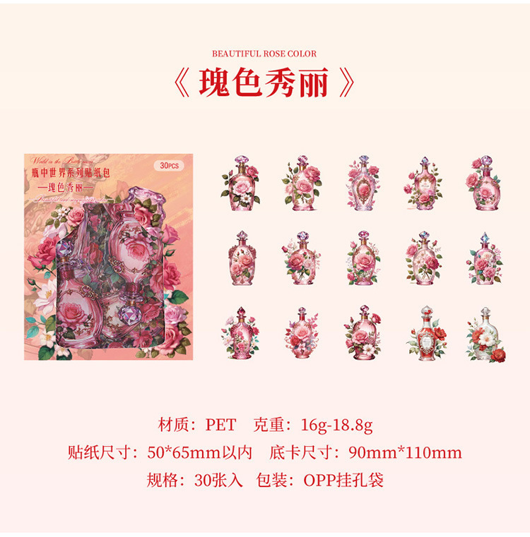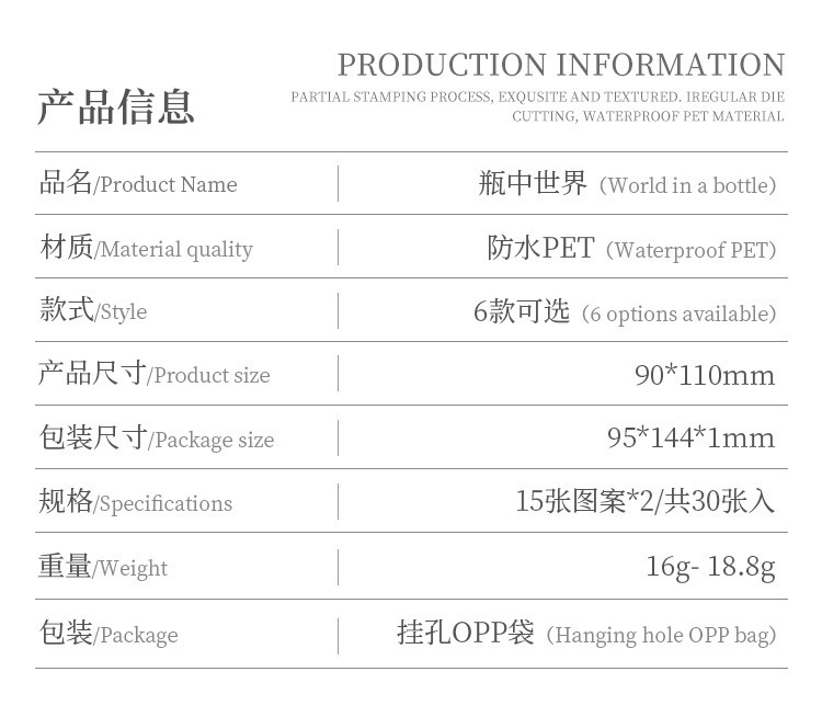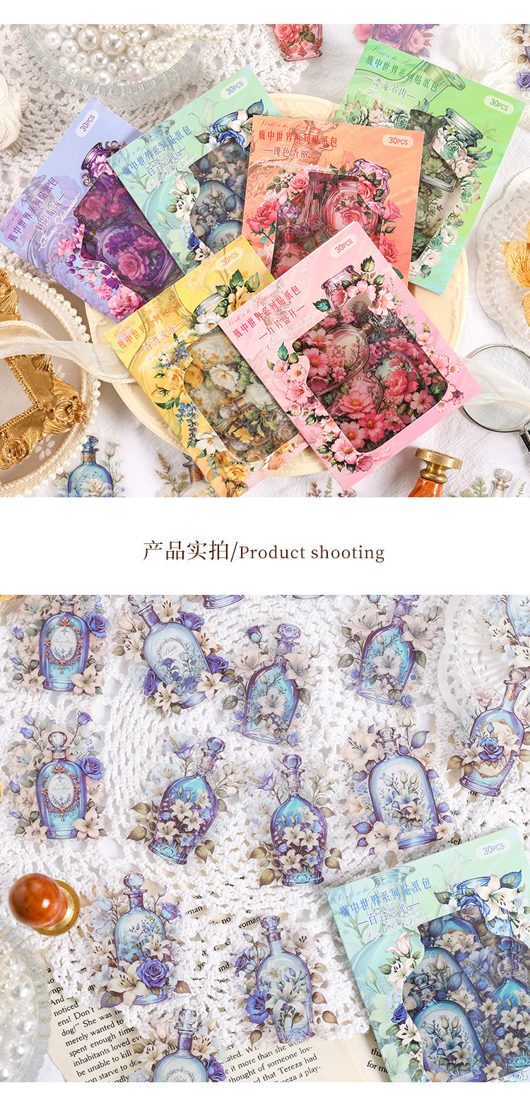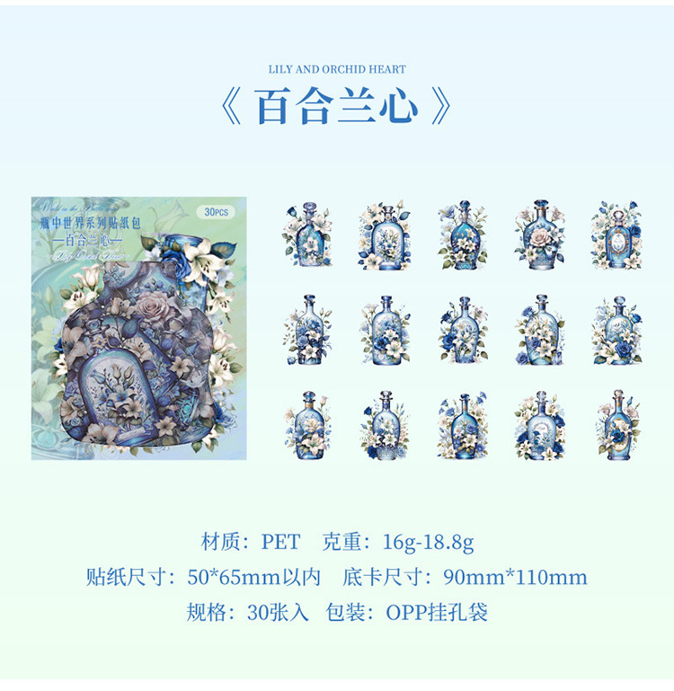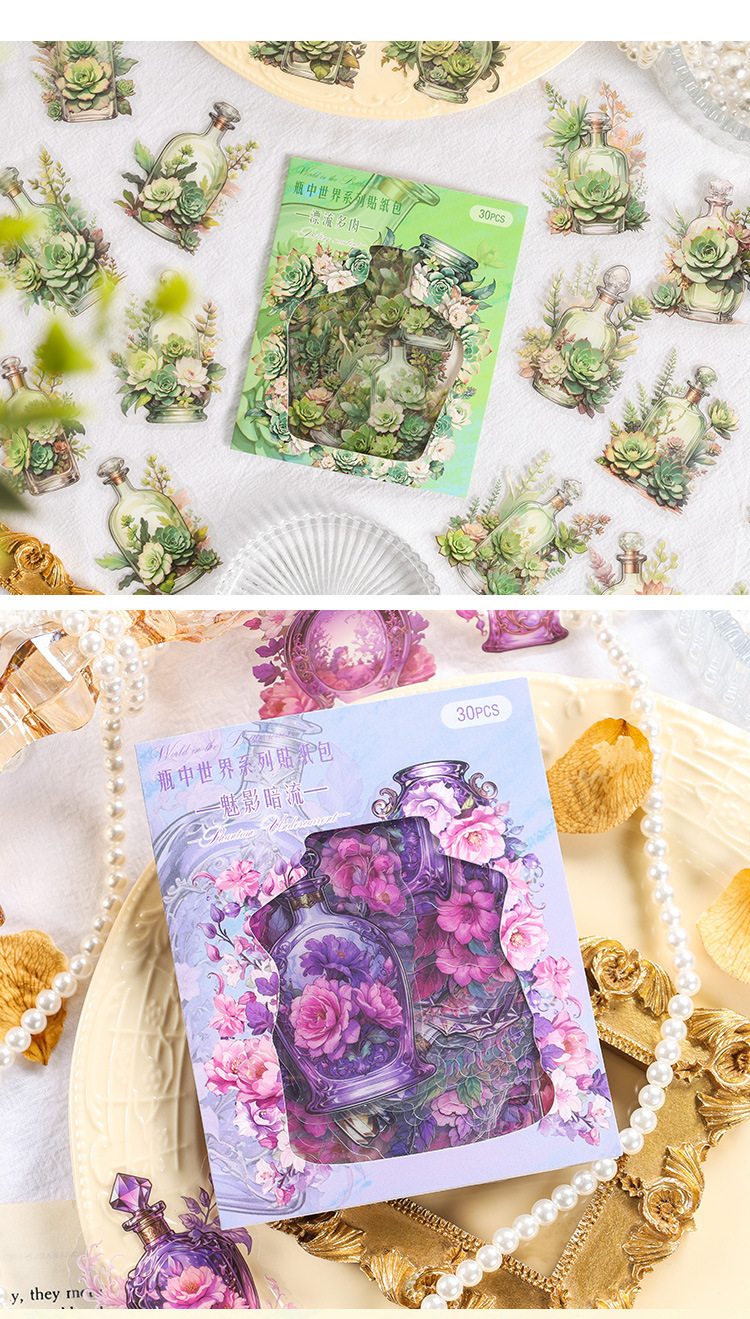 瓶の中の世界petシール花瓶創意植物花卉異形カード流麻手帳装飾素材タイル