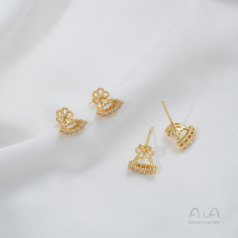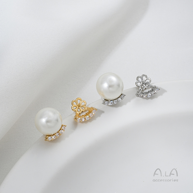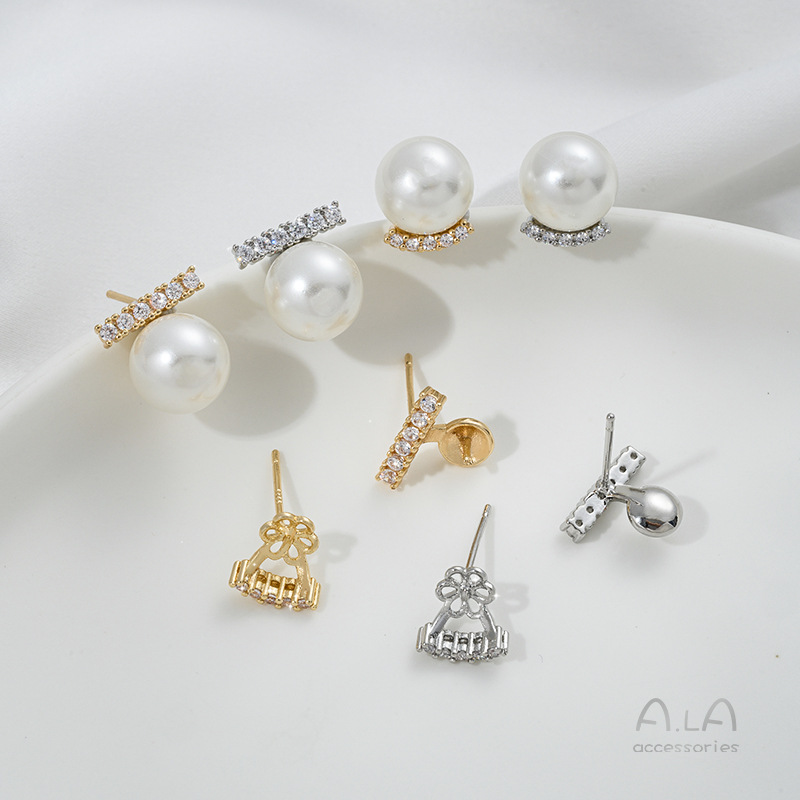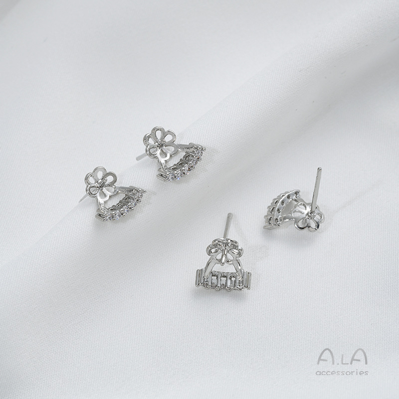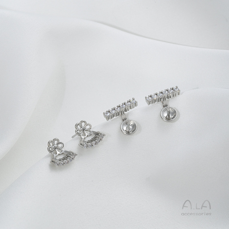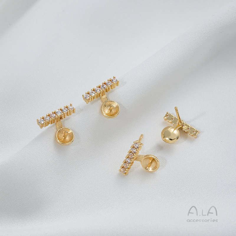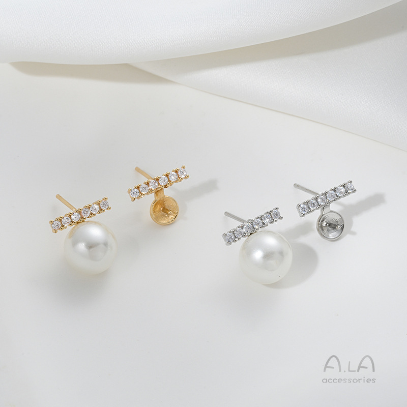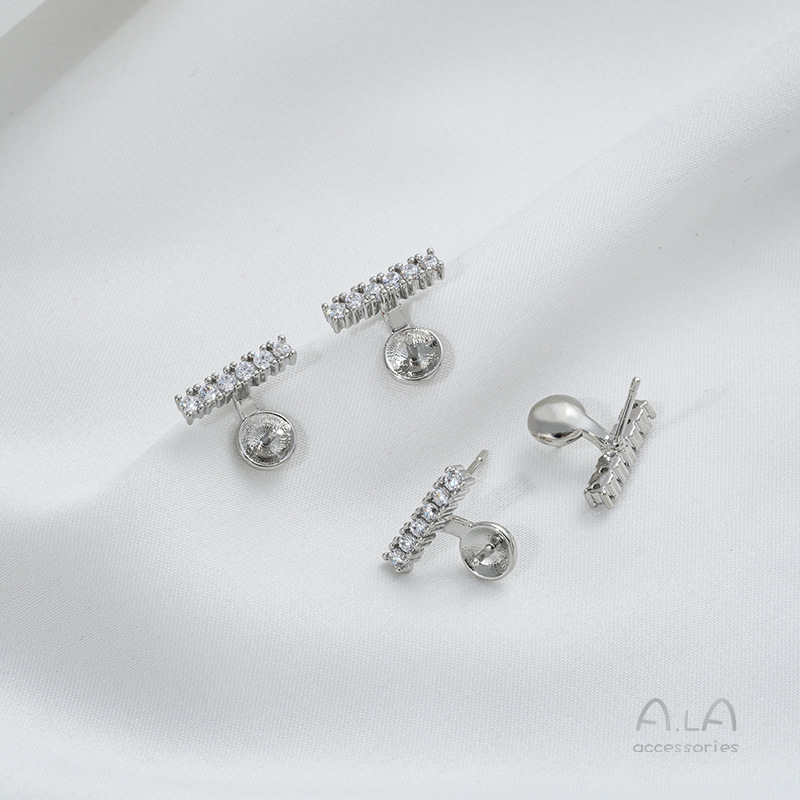 镶嵌锆石C字一字半孔珠托耳钉