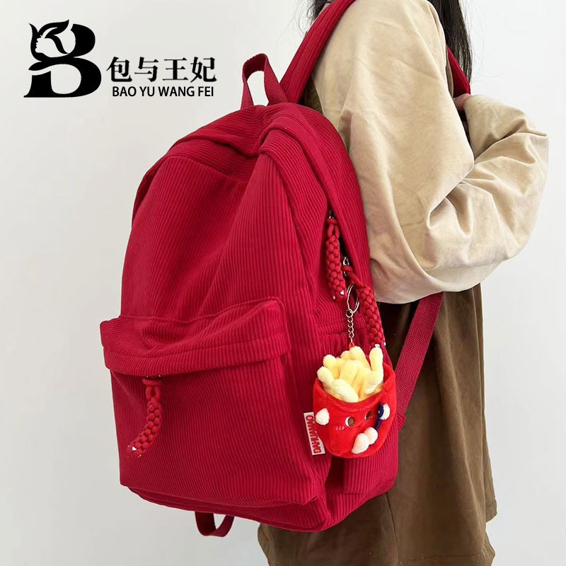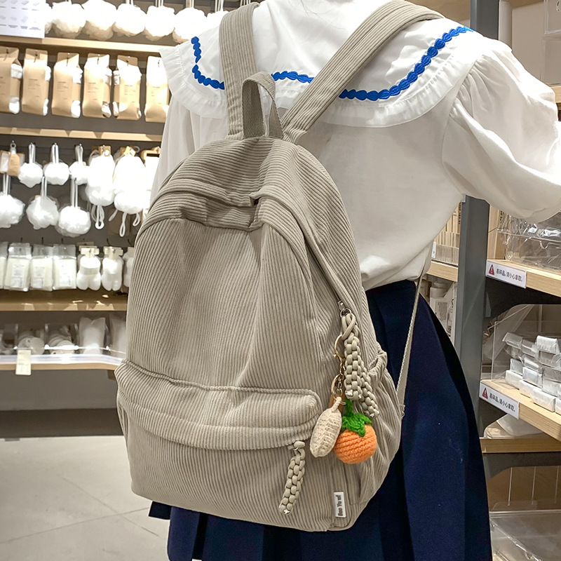 2024新型コーデュロイかばん女子韓国版日本系シンプルなカジュアル大容量高校生のリュックサック