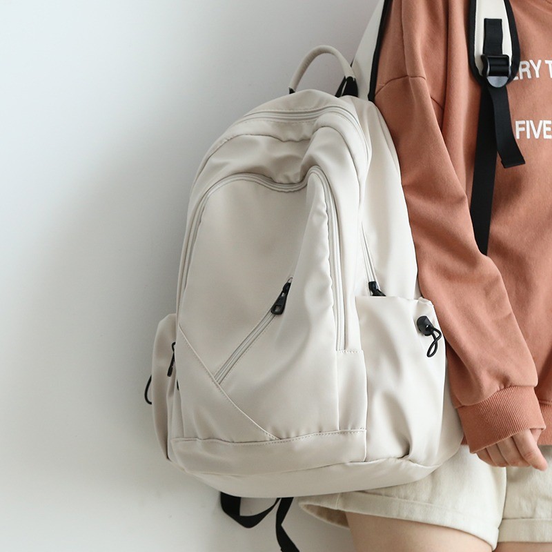 新しい大容量無地バックパック、男性用ナイロン韓国風多用途スクールバッグ、女性用中学生大学生旅行用バックパック