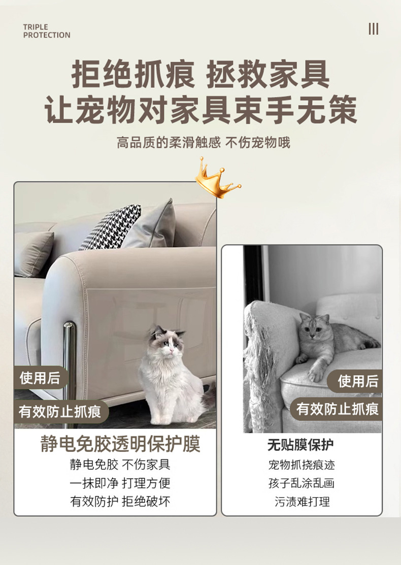防猫抓沙发保护贴膜家具透明防护套防猫爪床边罩宠物猫咪防抓膜贴