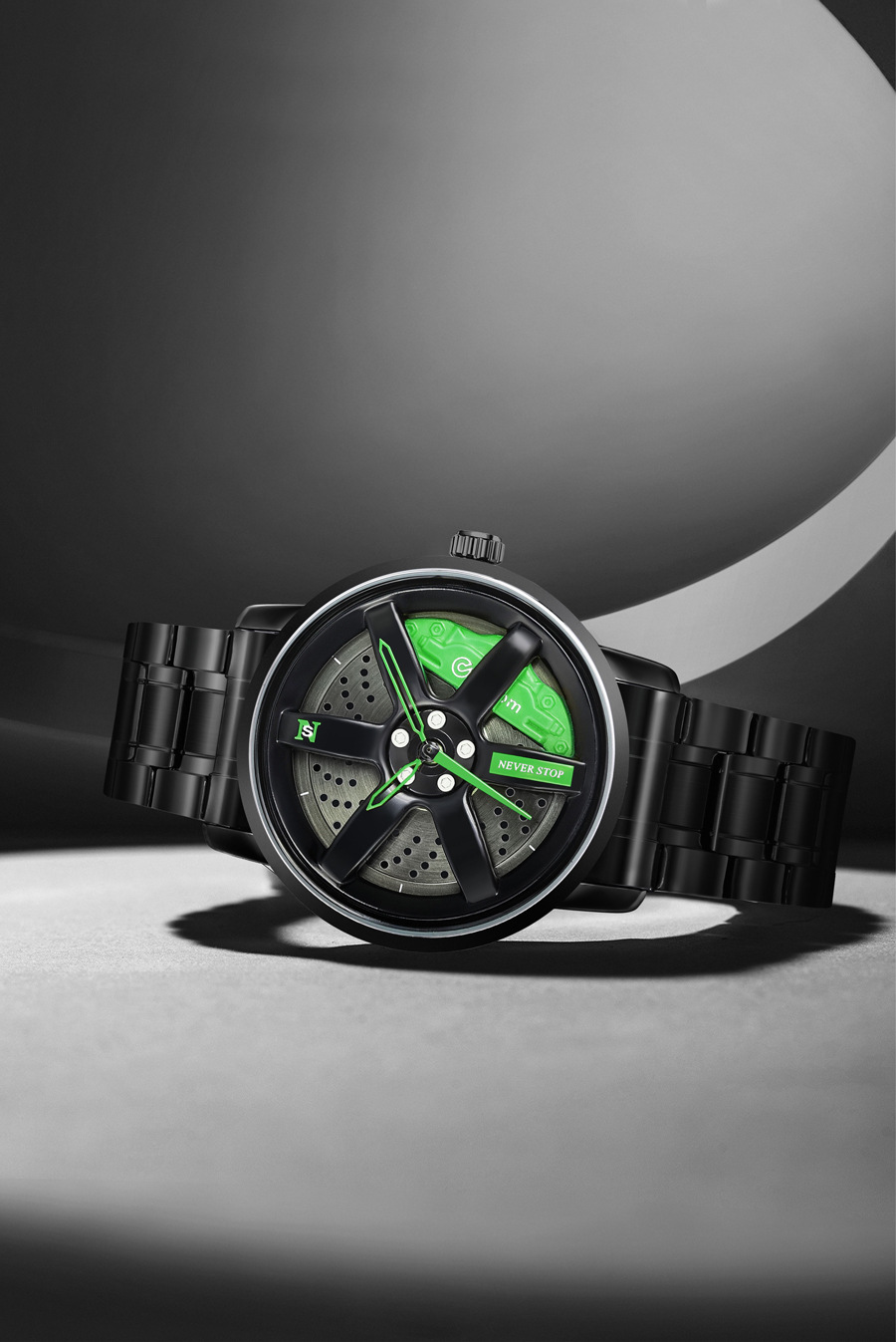 NS品牌跨境爆款男士钢带手表汽车轮毂可转动表盘石英表工厂现货
