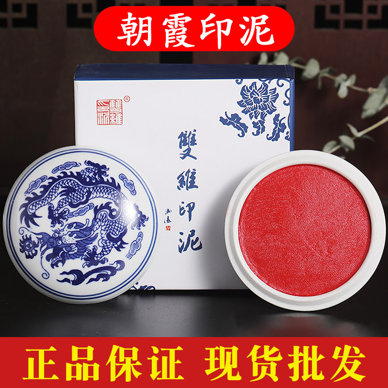 正品双維印泥八宝朝霞ヒープ朱砂赤色印鑑篆刻書道書画泥青花磁器箱入り
