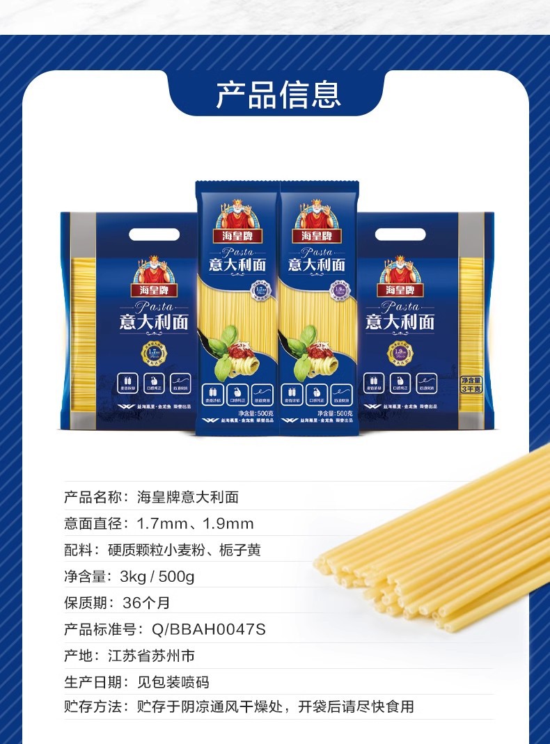 海皇牌パスタ3kg飲食業務用ピザ店ステーキレストラン直条パスタ家庭服