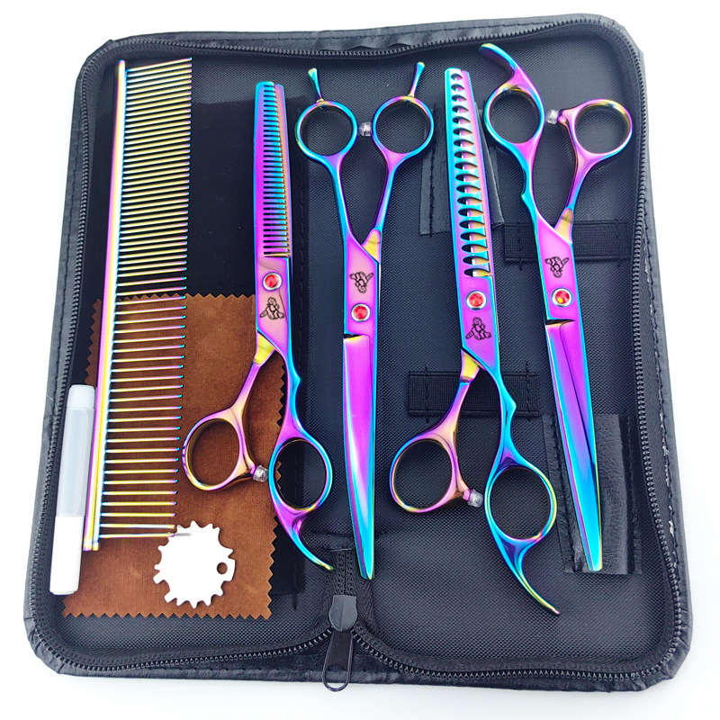 仕様 7.0インチストレートカット,7インチの骨切り,7インチ曲げカット,6.5インチ仕上げの薄い歯切り,セット【はさみ4本 + 櫛1本 + バッグ + 布拭き】