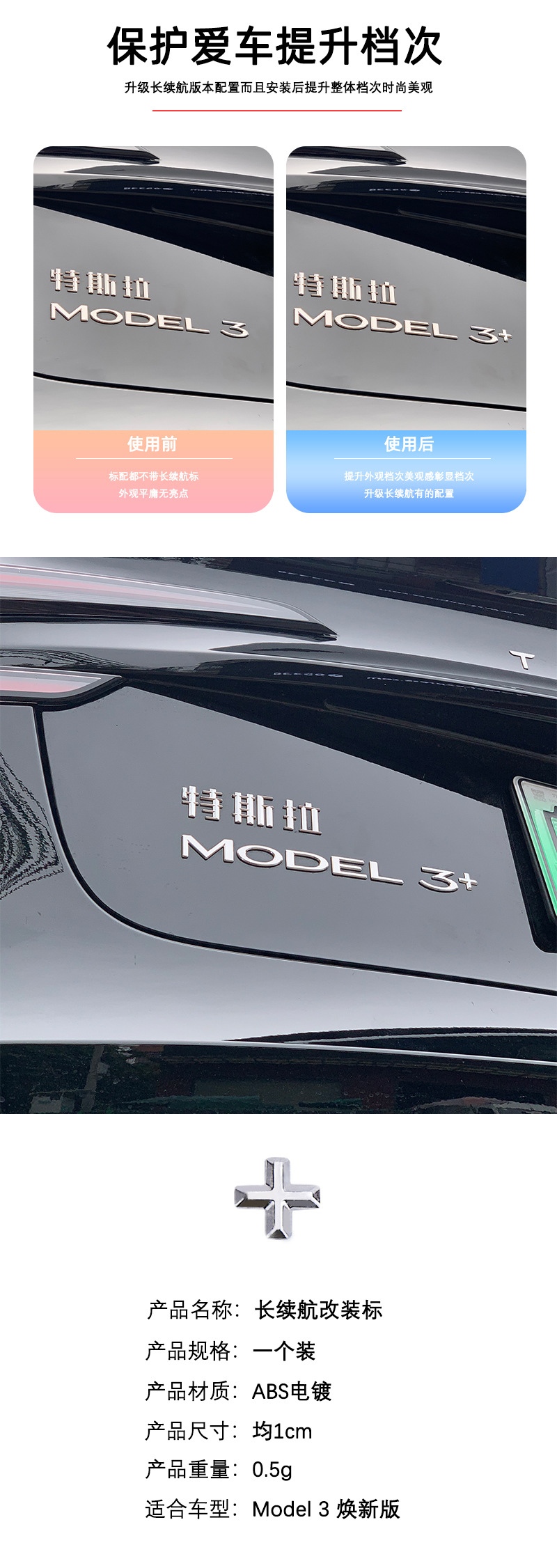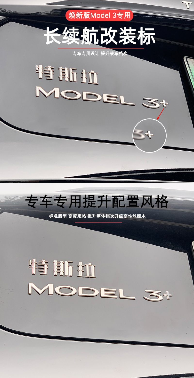 熙新版model 3尾標を適用して長い航続改造標テスラ外部改造運動部品を改造する