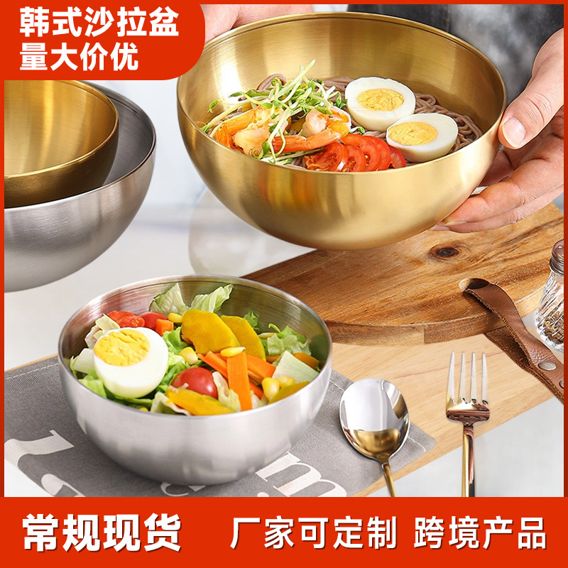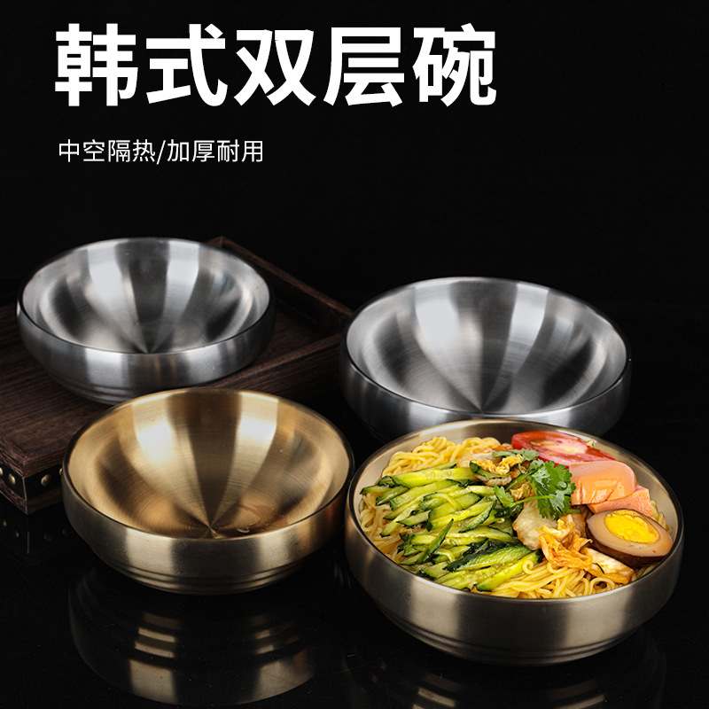 抗菌ステンレス金ボウル二層冷麺ボウルビビンバインスタントラーメン金メッキ大ボウル業務用カタツムリヌードルボウル