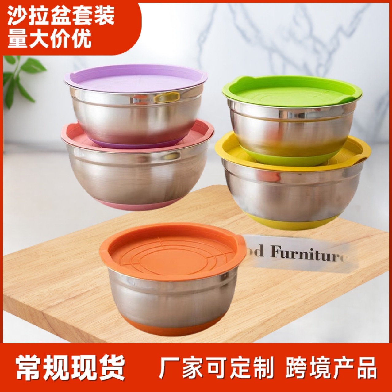 新型食品級ステンレス果物サラダ鉢は蓋付き密封円形スープ碗家庭用厨房豚油鉢を厚くします。