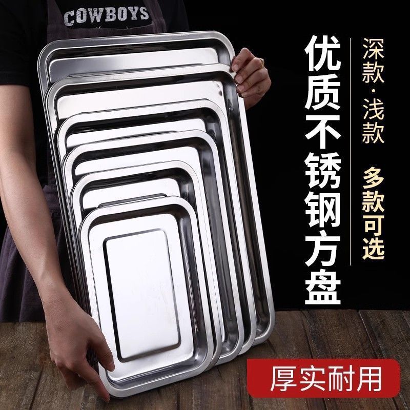 批发304不锈钢方盘加厚不锈钢托盘商用烤鱼盘食堂蒸饭盘不锈钢盘