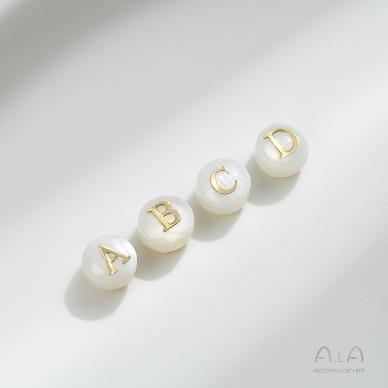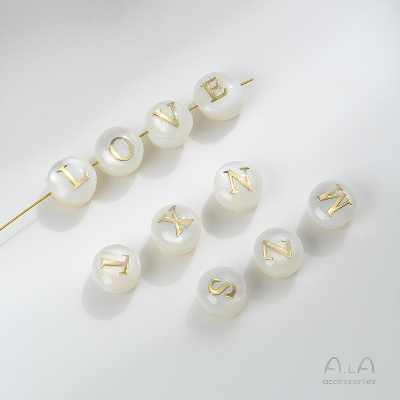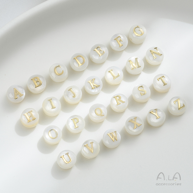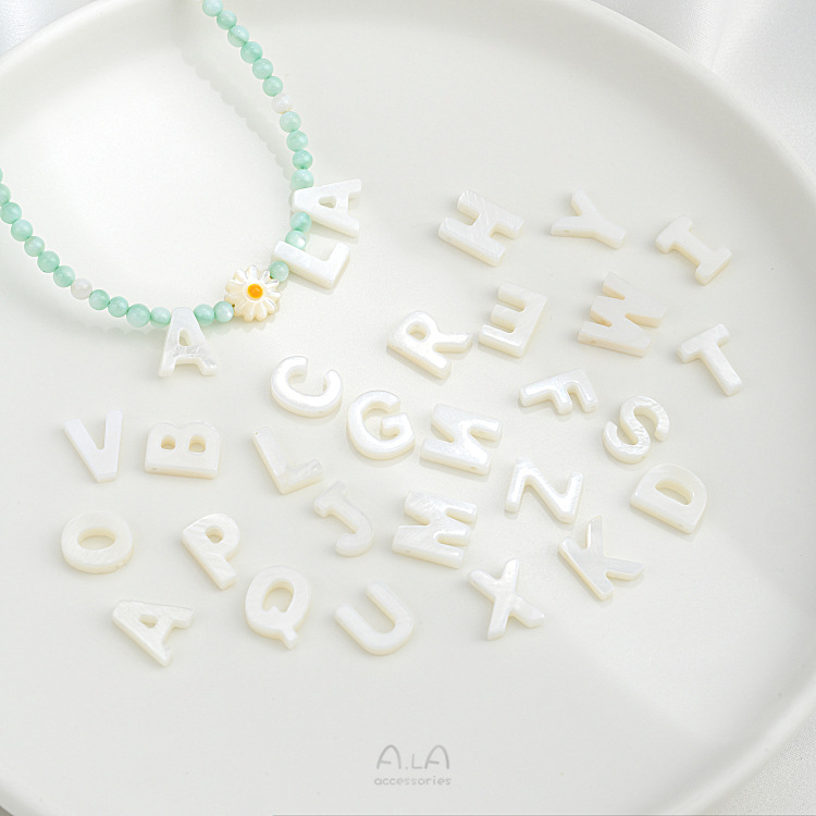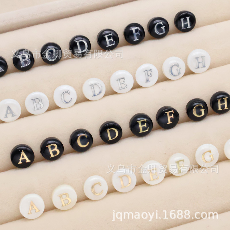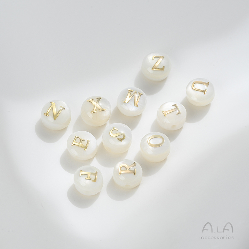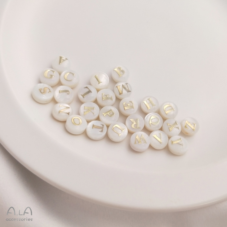 小号天然白蝶贝壳双面粘金属26字母隔珠