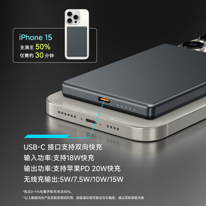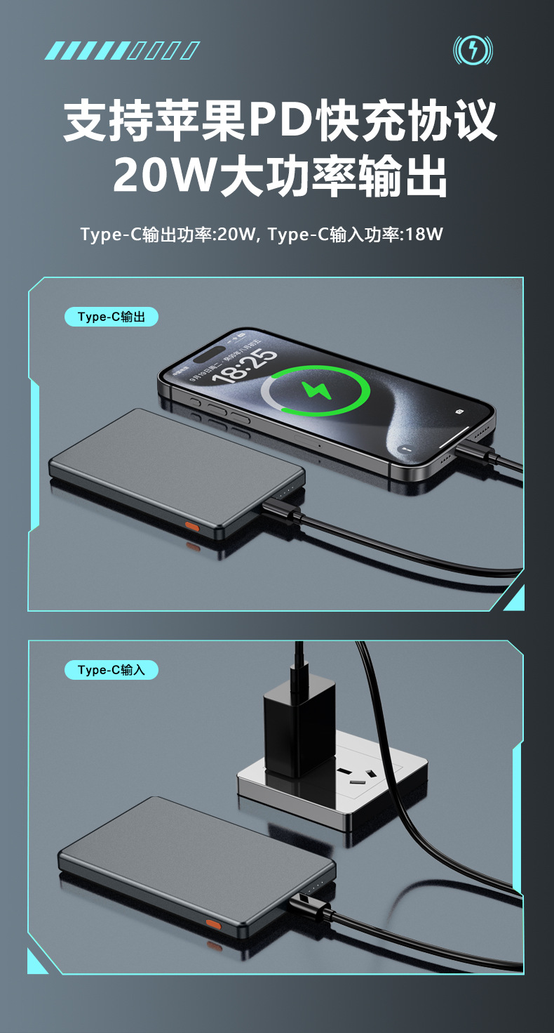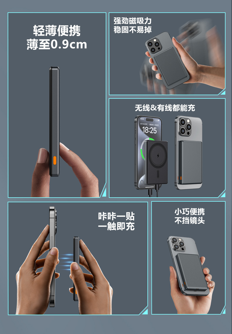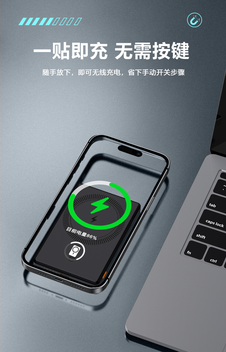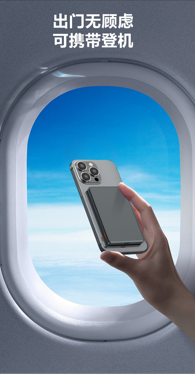 超薄9mm金属磁吸无线充电宝PD双向快充5000毫安弹窗移动电源批发