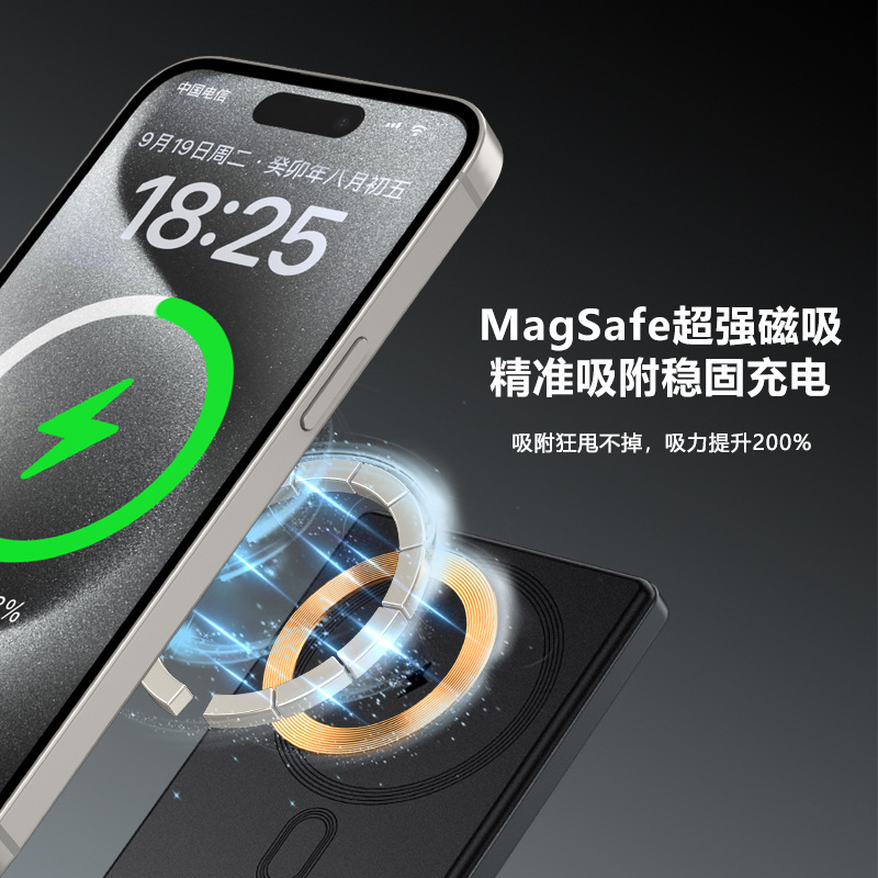 超薄型アルミ合金マグセーフ磁気吸引ワイヤレス充電宝ミニ10000ミリアンペア小型ギフトモバイル電源