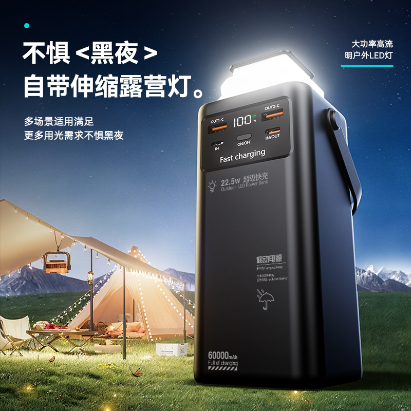 22.5W超速充80000 600ミリアンペア大容量耐久性のある生放送は、ケーブル付き屋外ランプの移動電源から出店します。