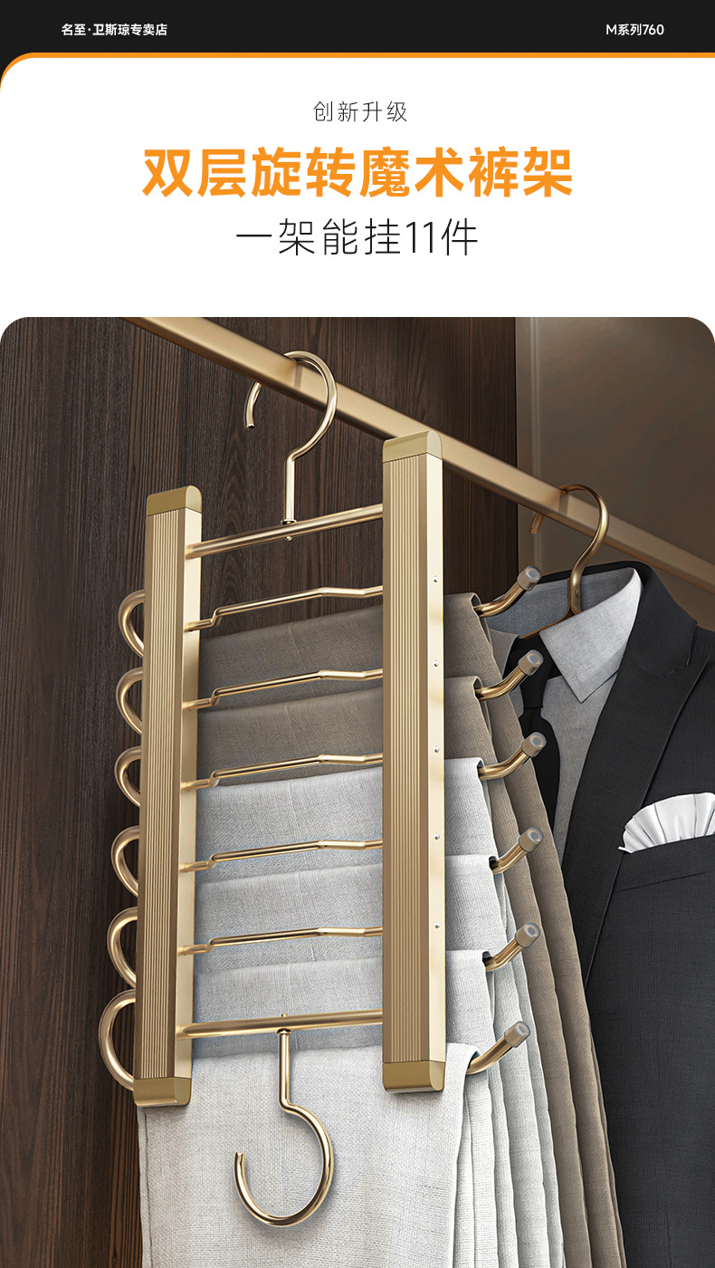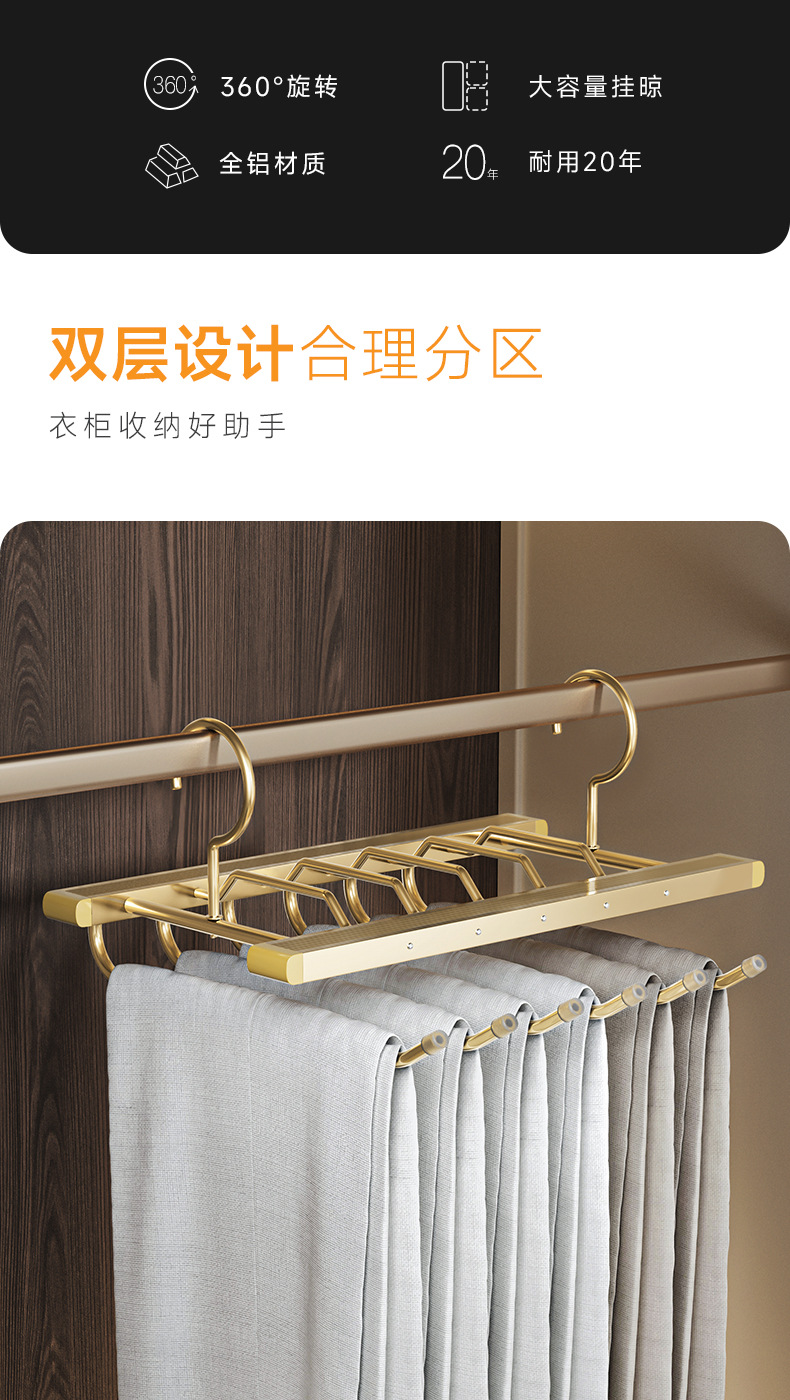 アルミ合金折りたたみズボンハンガー家庭用ズボン掛け専用ハンガー引き出しズボン掛けタンスマジックズボンクリップ収納神器