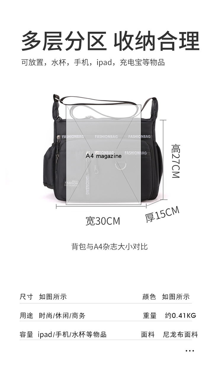 爆発的なビジネスバッグ男性の新しいモデルは、軽やかなオックスフォード布の多層カジュアルなシングルバッグ通勤のショルダーバッグのバッグ男性を組み合わせたものです