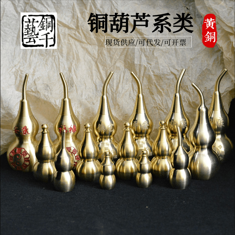 现货铜葫芦批发小上开纯铜葫芦空心五帝钱大号八卦福禄招财铜葫芦