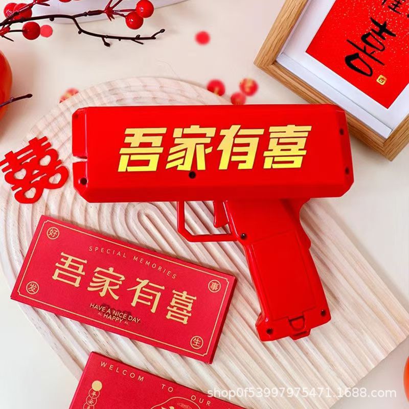 クリエイティブなマネースプレーガン、結婚式のドアブロックゲーム、赤い封筒をつかむ、写真小道具、箸、紙幣を挟むマネーディスペンサー
