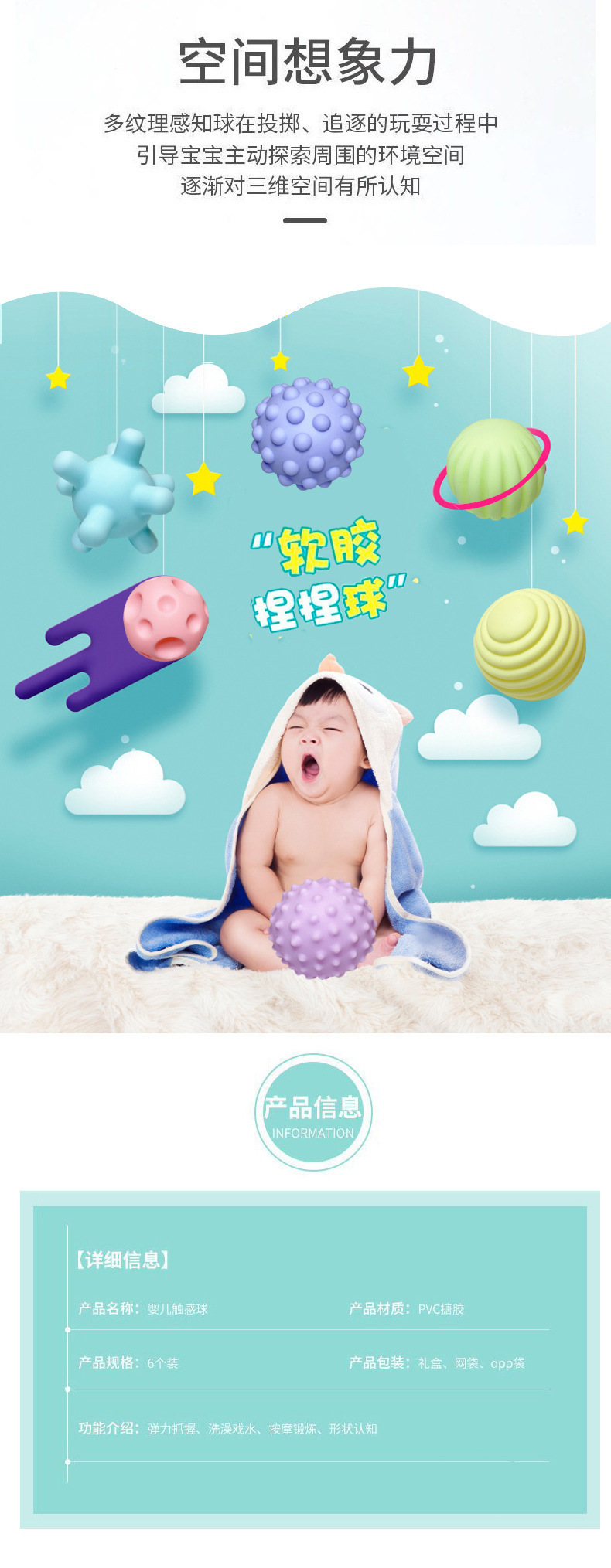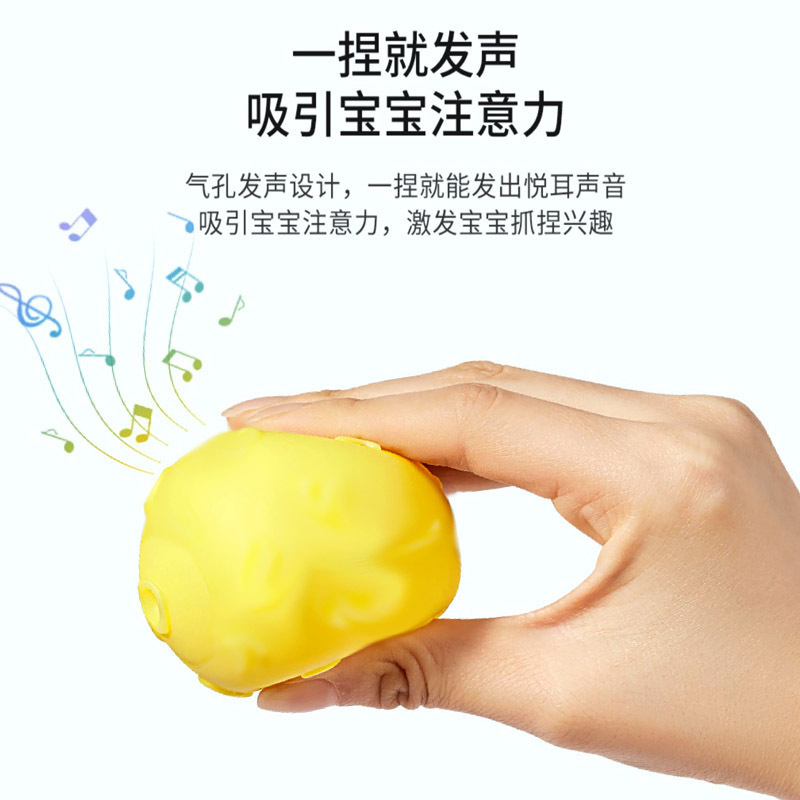 乳幼児の手でボールをつかむ赤ちゃんは訓練玩具を握ってボールを撫でます。6-12月にマッサージボールをかじって風呂に入って吸水します。