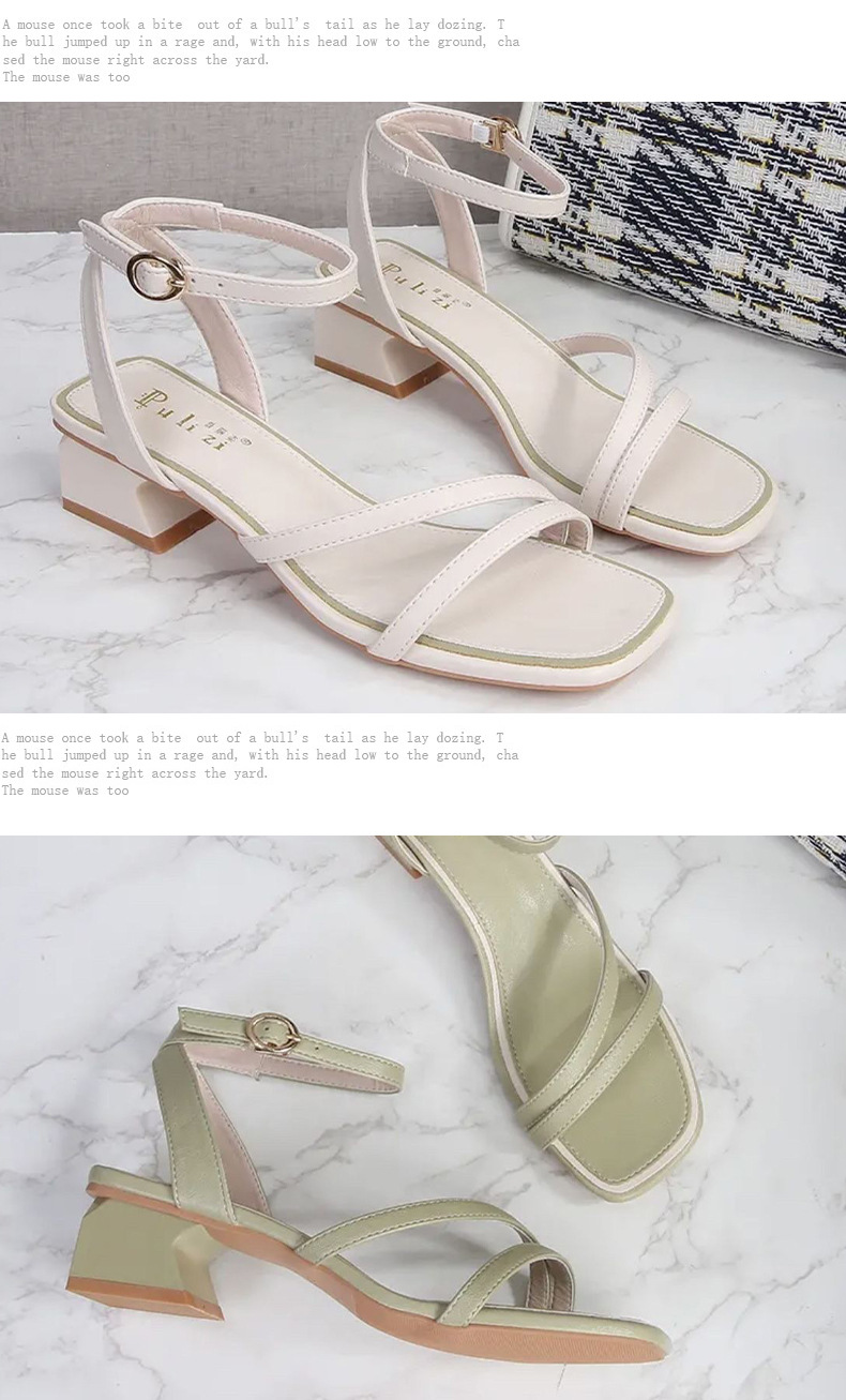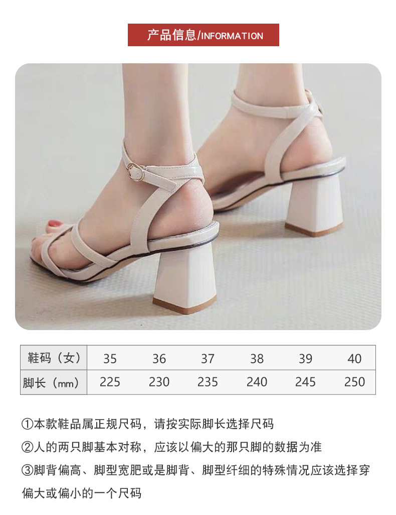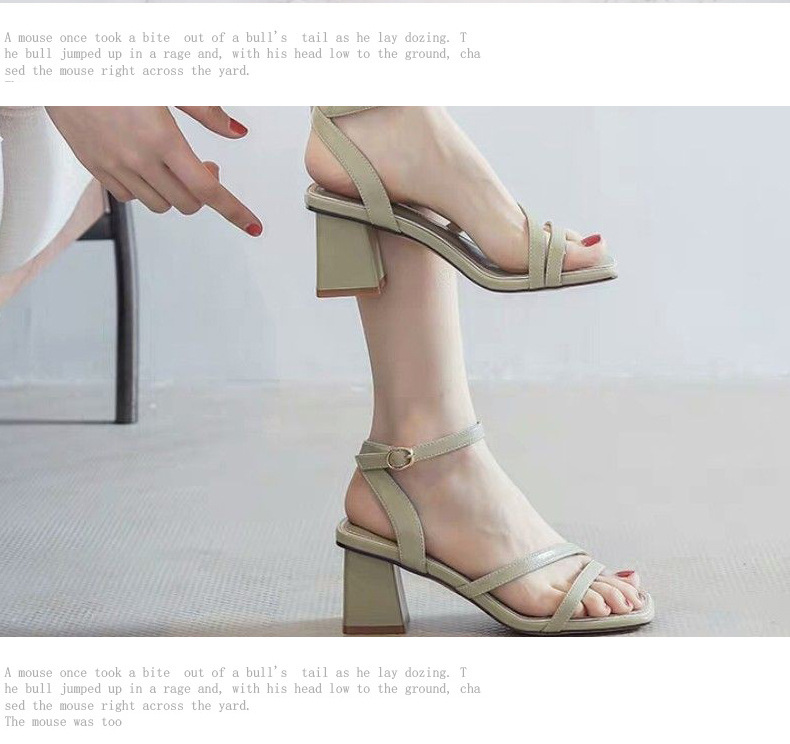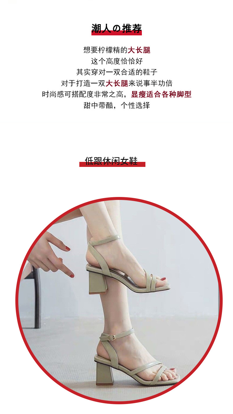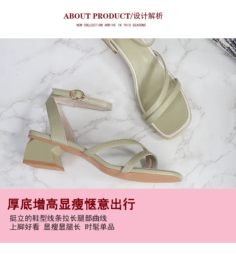 2025年夏の新作、ワンラインバックル、オープントゥ、スクエアトゥ、チャンキーヒール、本革レディースサンダル、ファッショナブルで多用途なハイヒールレディースサンダル