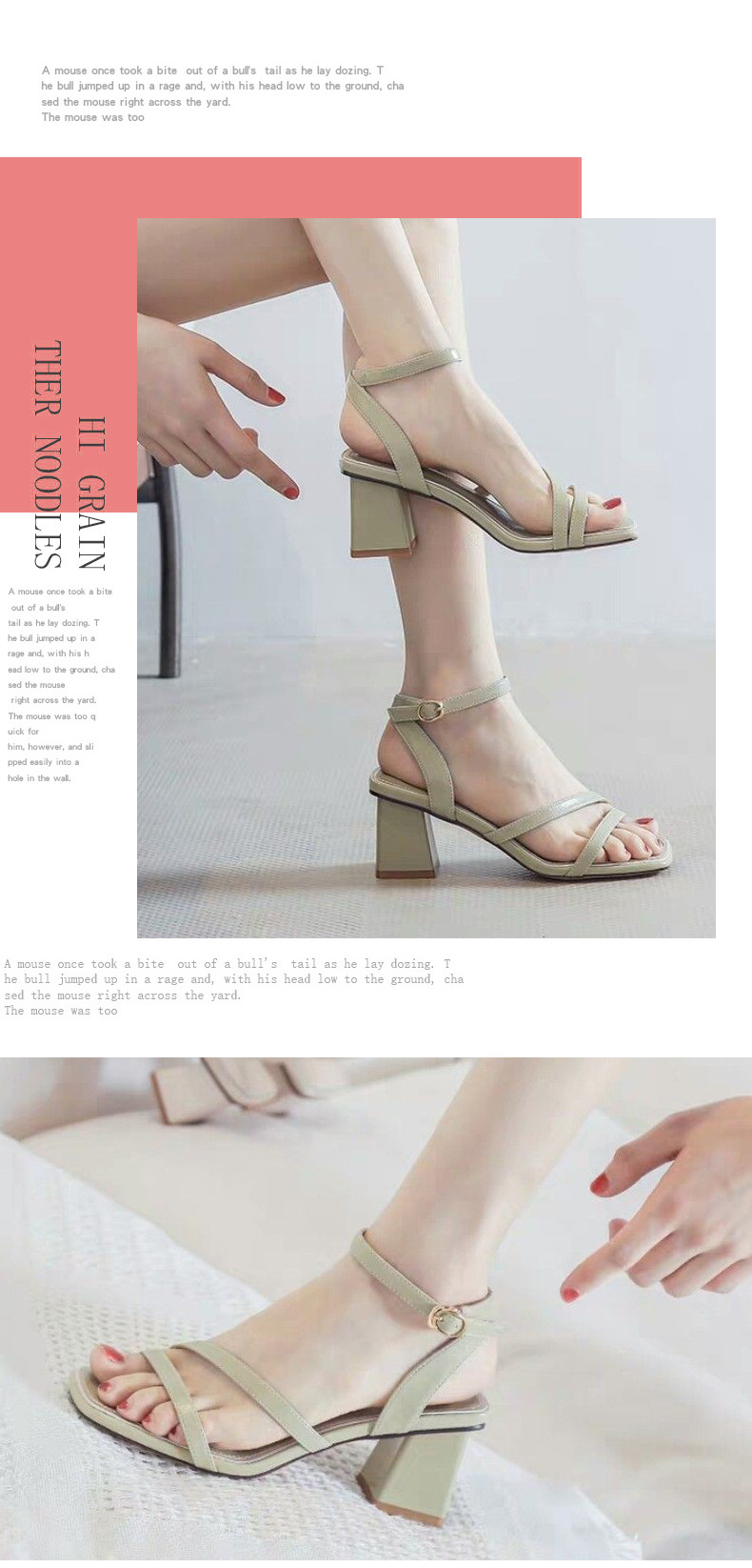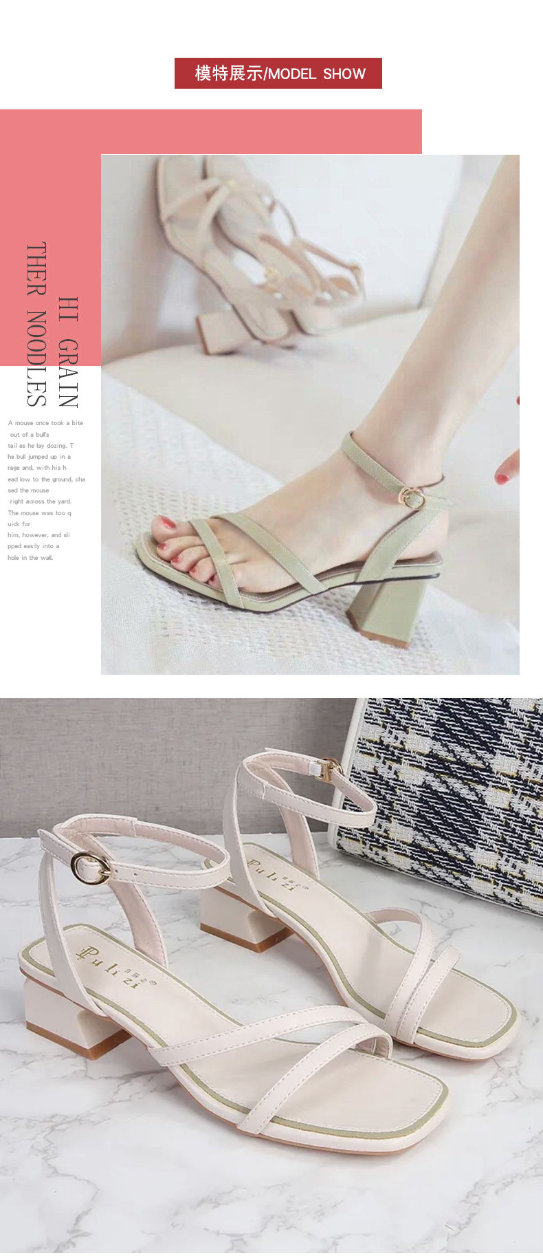 外贸爆款2025夏季新款韩版凉鞋女一字扣带鱼嘴粗跟时尚鞋子外穿