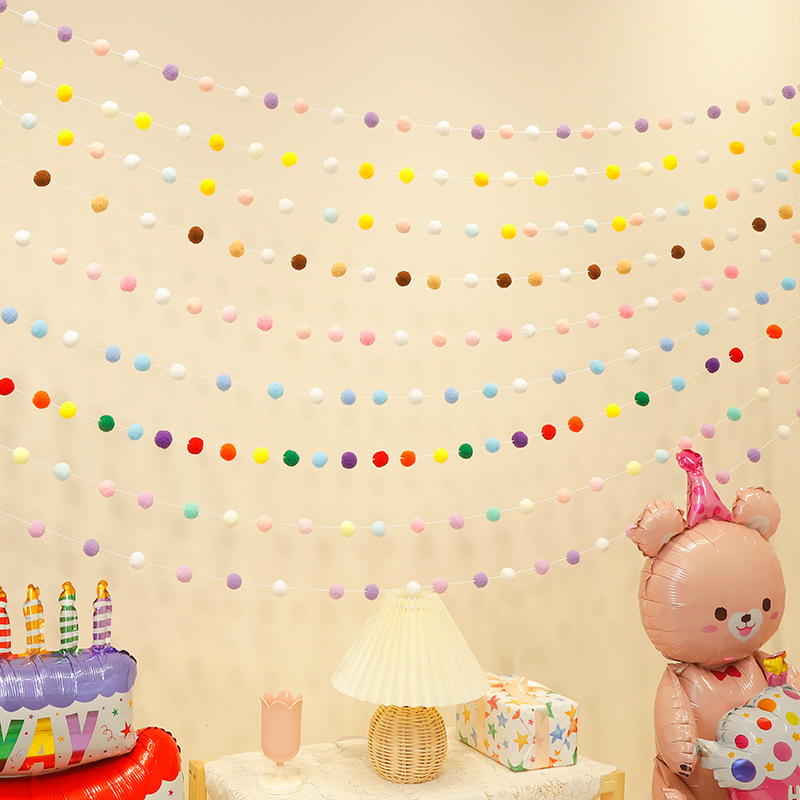 新年会装飾用の毛玉飾り、パーティーハンギングデコレーション、背景、子供の誕生日飾り