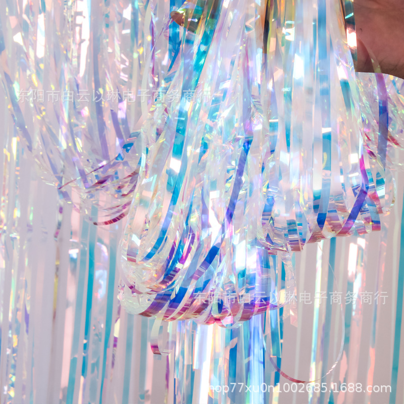 雨の糸のカーテンの誕生日の満1歳の舞台は背景のシーンを装飾してパーティーを撮影します。
