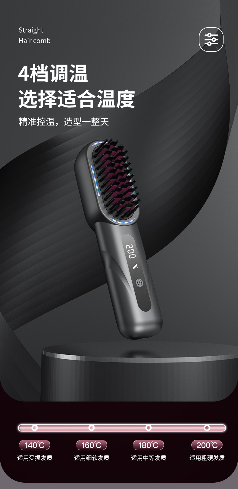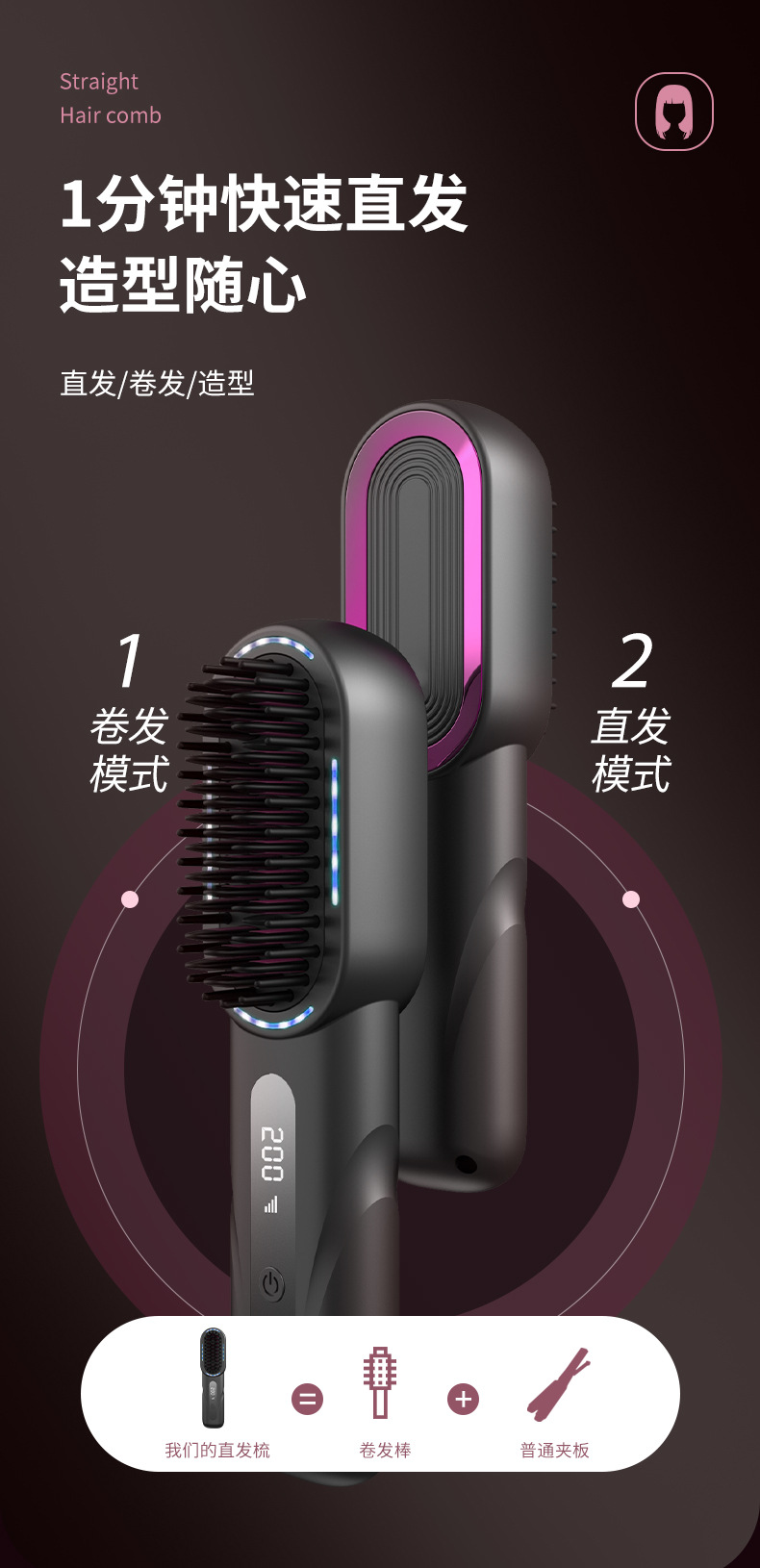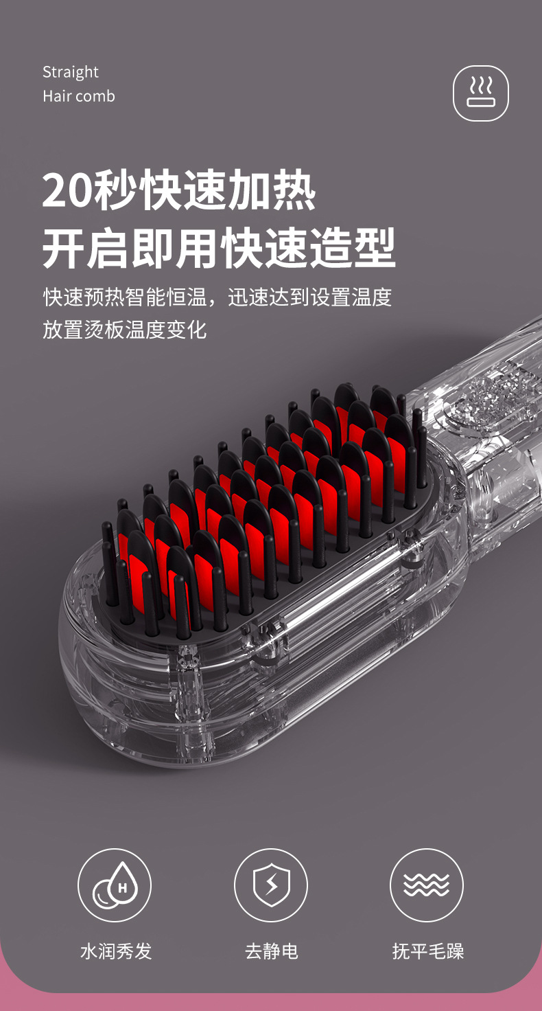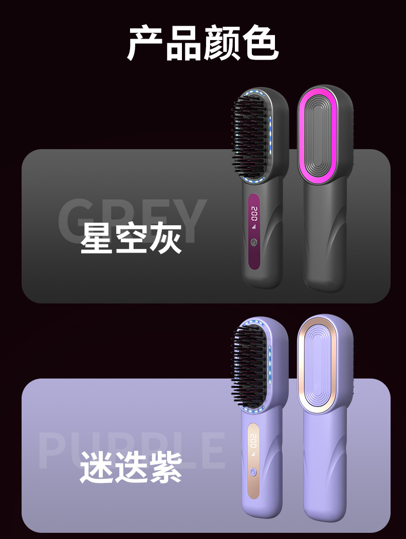 液晶USB充电陶瓷加热电梳子直发器无线便携直发梳卷发器护发恒温