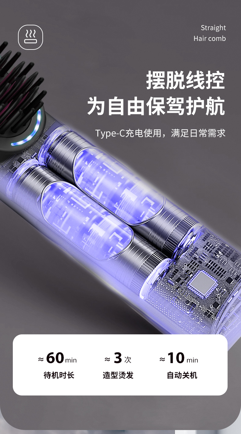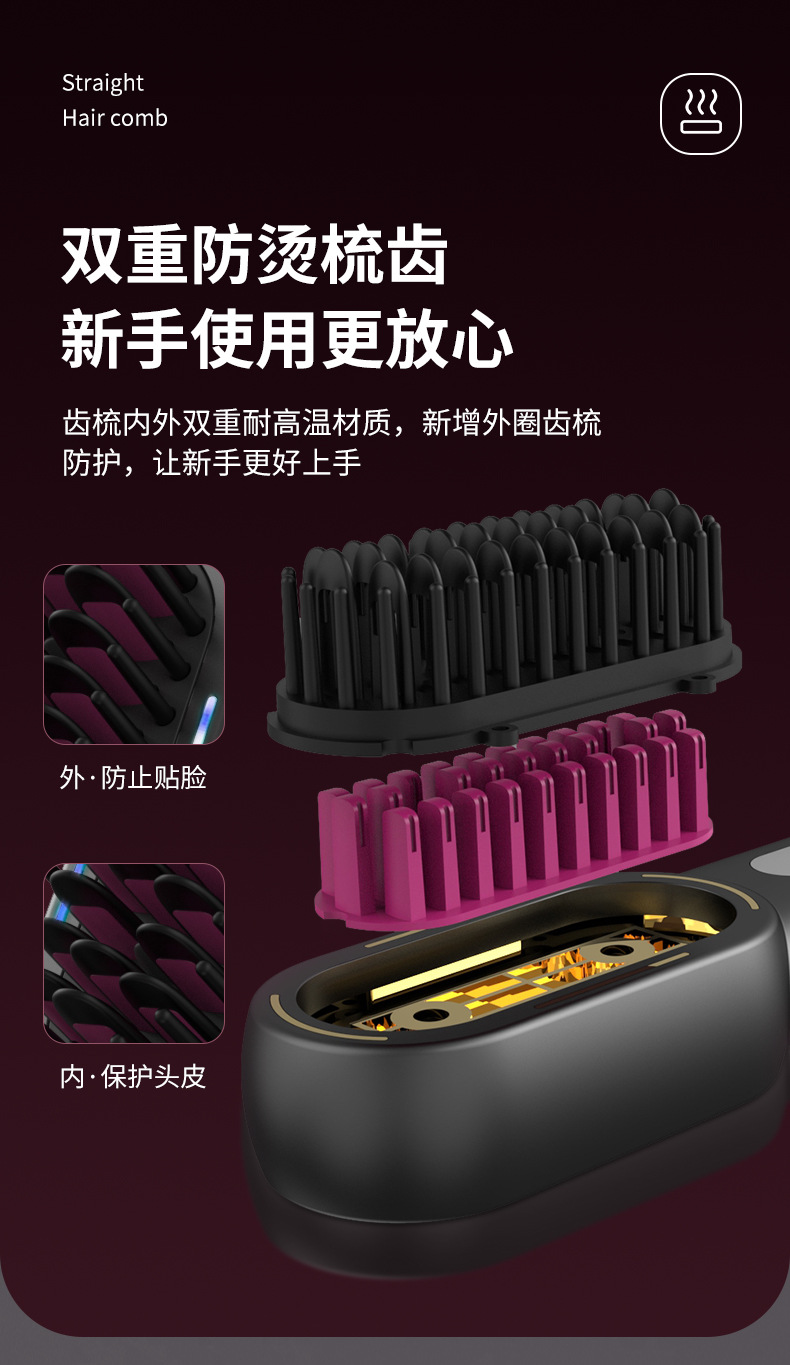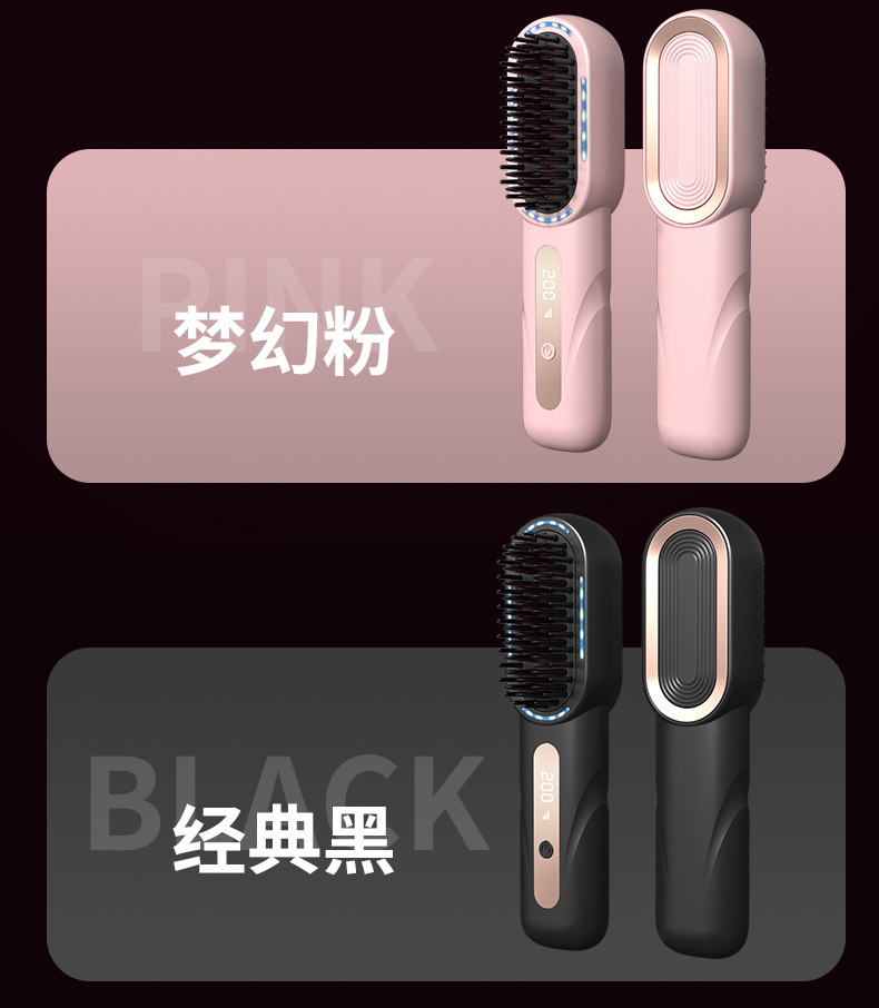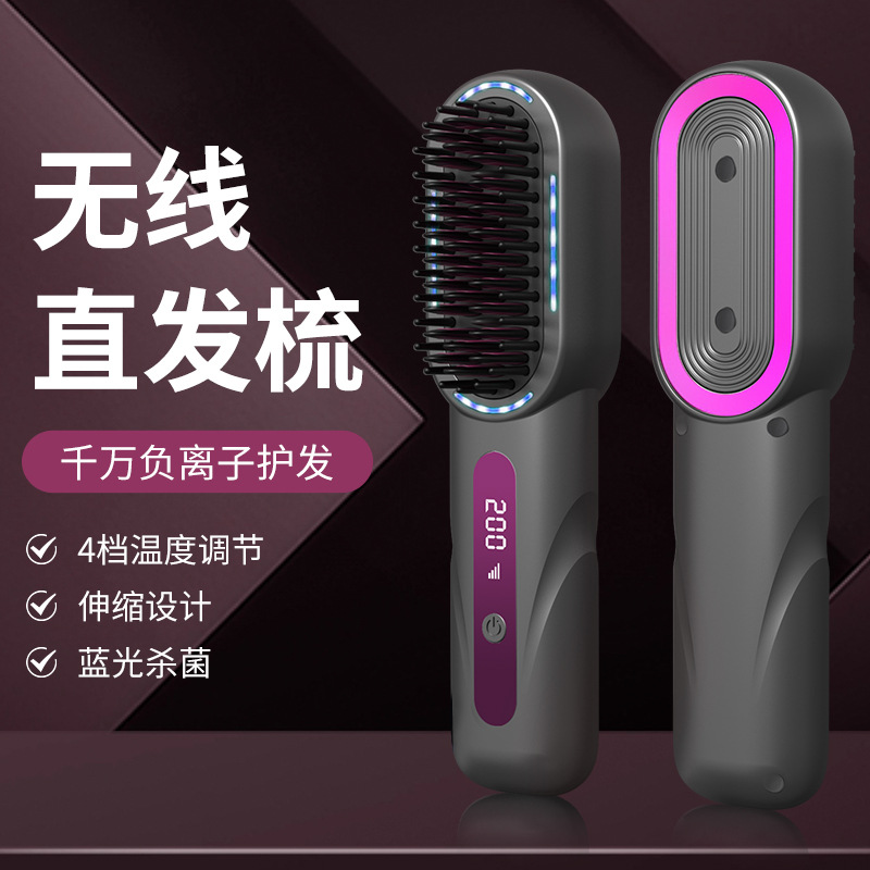 跨境新品无线直发梳负离子高颅顶卷发棒充电款护发直发器恒温卷发