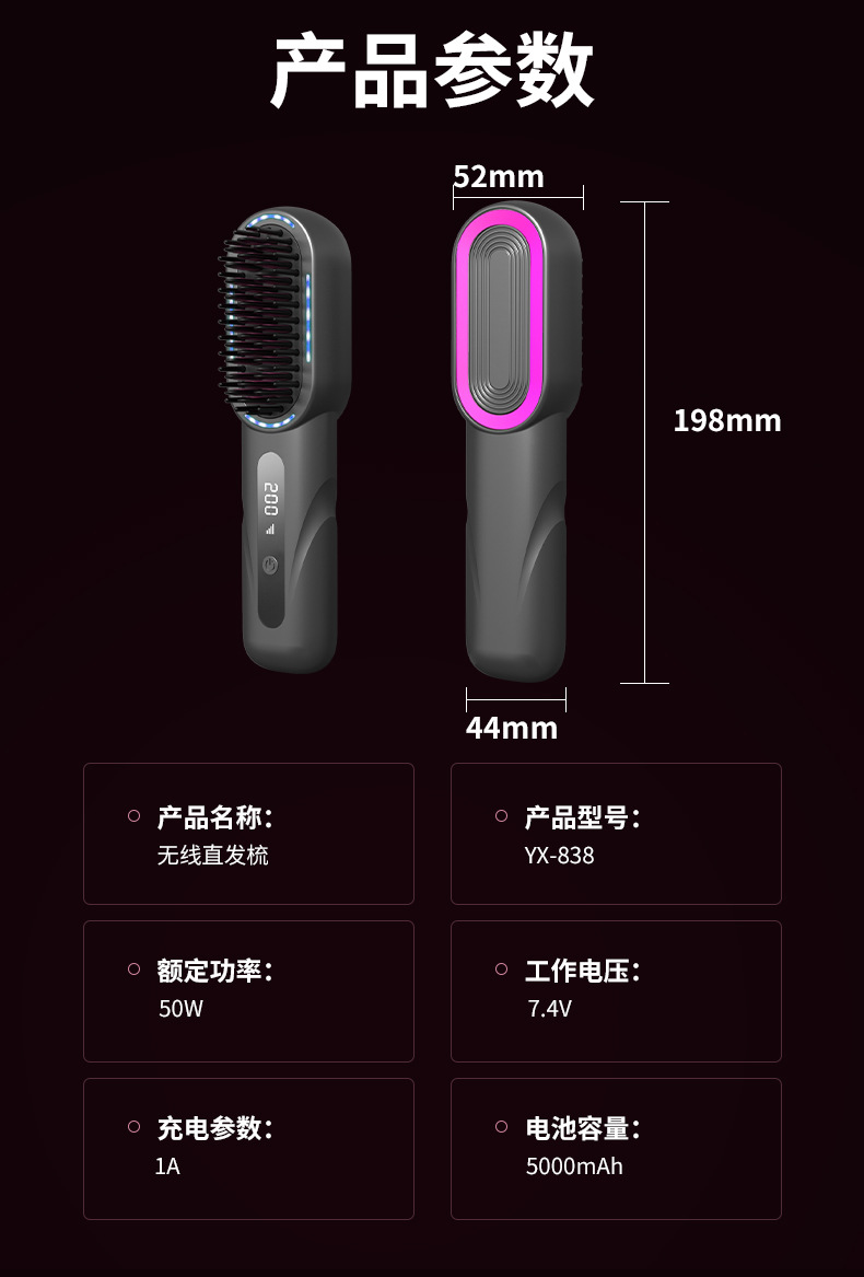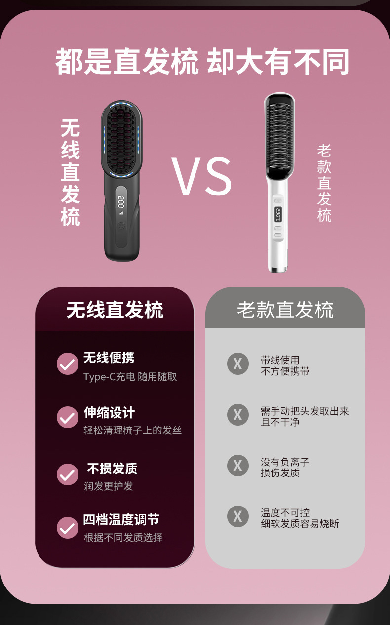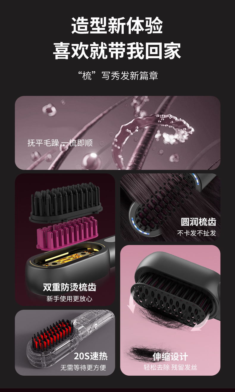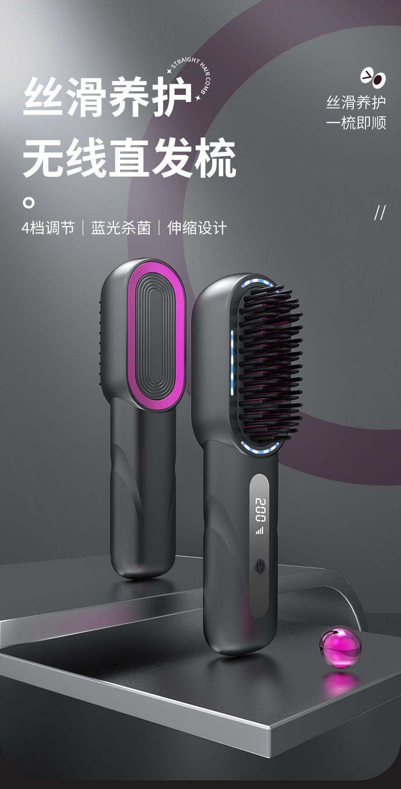 新品无线直发梳负离子 高颅顶卷发棒不伤发 充电款直发器