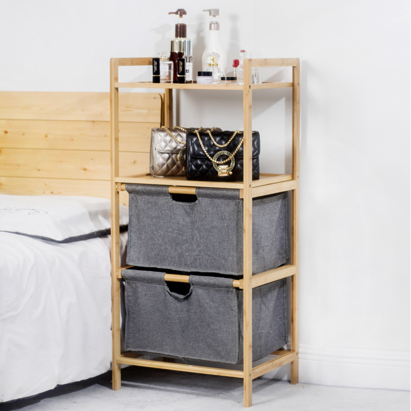 多機能ダブルバケツダブル引き出し収納棚竹プラス布汚れた服収納寝室リビングシェルフ収納バスケット
