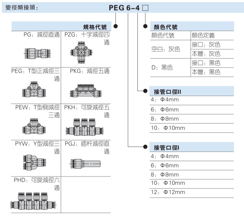 品名 PEG6-4/8-6/10-8/12-8/12-10
