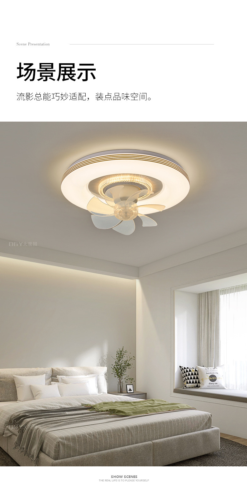 大観園ファンランプ寝室ランプ現代シンプルレストランランプ一体首振りファンランプ雲輪部屋天井ランプ