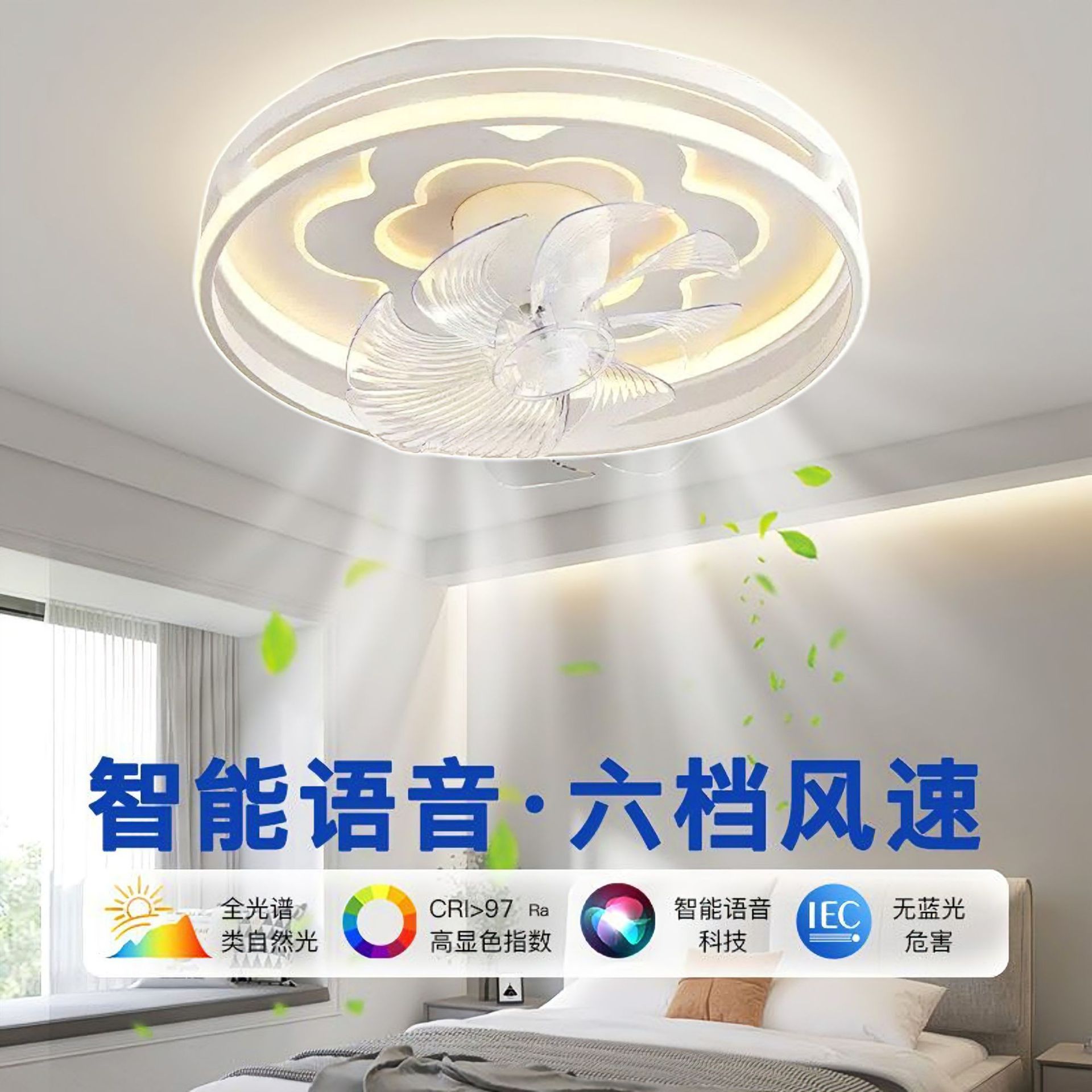 寝室ファンランプ柔らかい風360度首を横に振って寝室レストランファンランプ音声スマートランプ中山照明