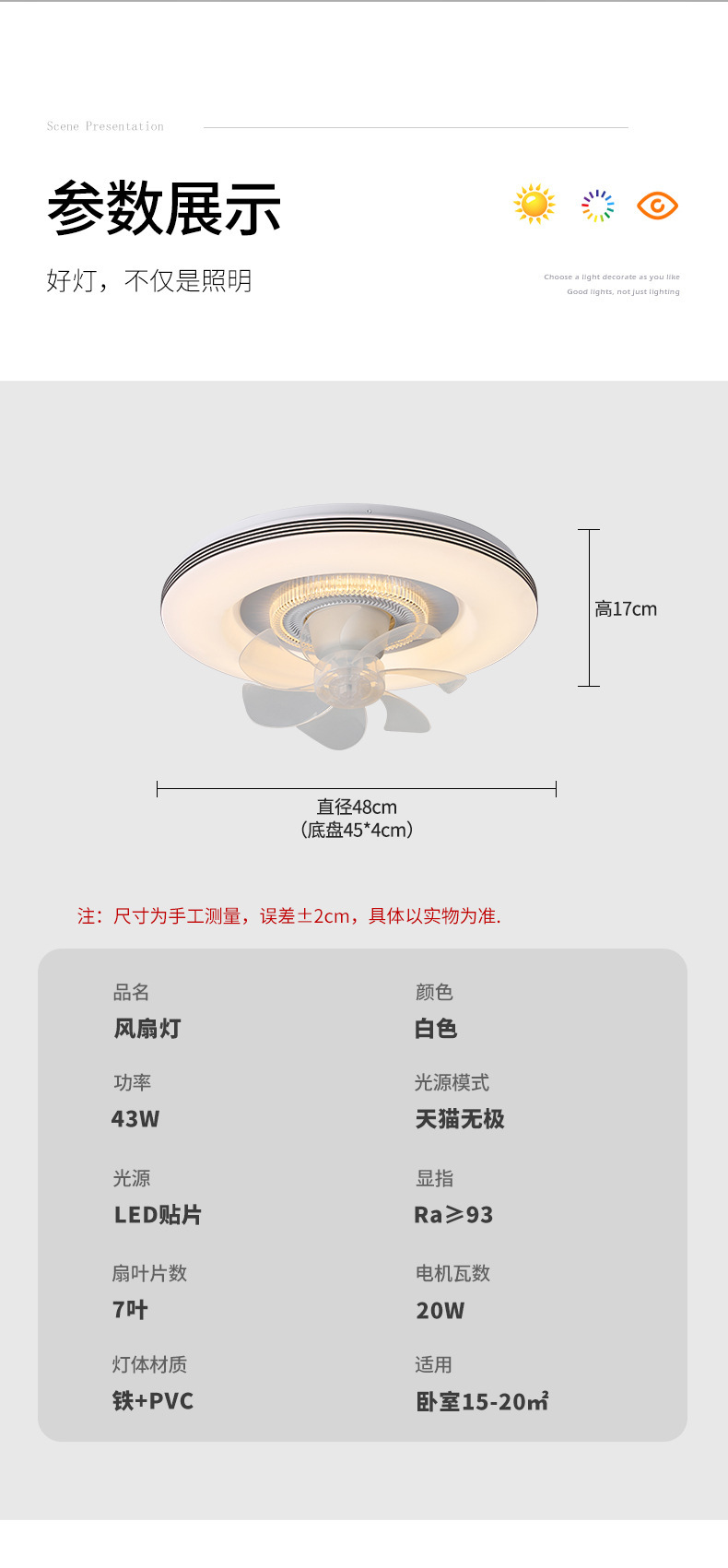 现代简约卧室护眼风扇灯儿童房奶油风主卧餐厅节能静音电扇灯412L