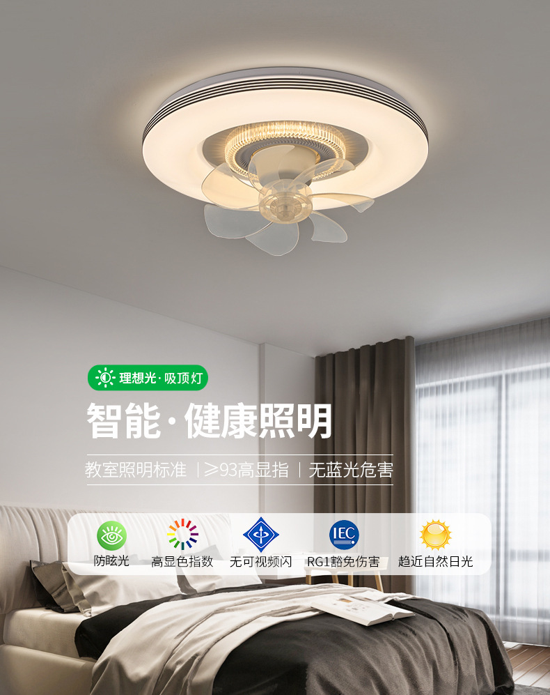 360度摇头家用卧室风扇灯新款轻奢客厅房间餐厅吸顶灯全光谱护眼