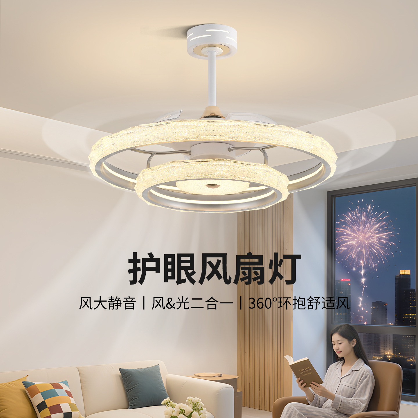 隐形无叶风扇灯2025年新款极简现代家用餐厅灯卧室电扇吸顶灯357L