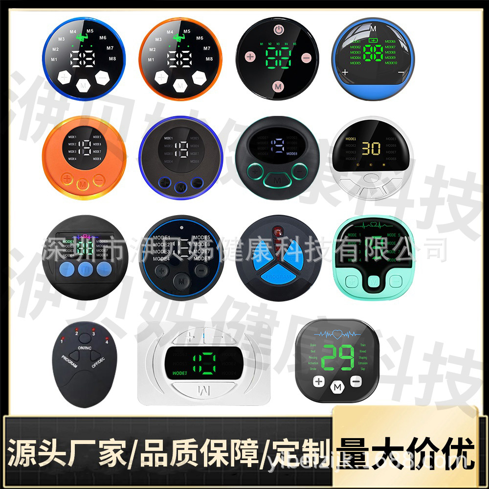 EMS/TENS按摩器主机源头工厂,产品款式太多,没办法全部展示,工厂支持外观,颜色,LOGO,软件功能等定制,支持包模,按扣的,磁扣的都有货,链接中没有找到你需要的,都可以旺旺咨询。本链接销售产品为单独的主机,需要配套的电极片,腰带,手臂等使用,具体可以旺旺咨询。