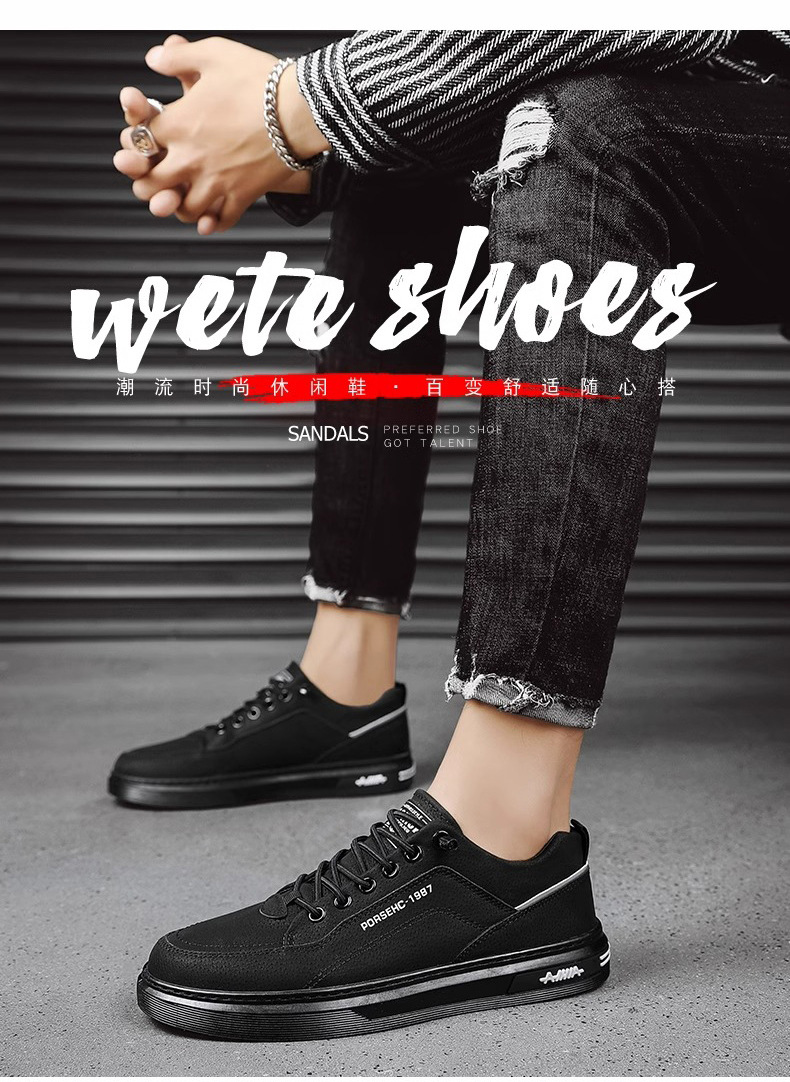 春の男性の靴の新型の通気性の防水の滑り止めの靴の男性の項の韓国版は黒色の革靴のレジャーの板の靴のファッションの靴を合わせます。