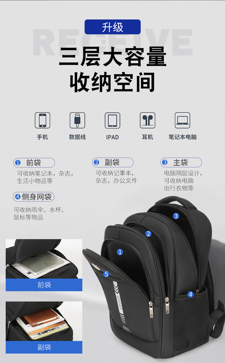 新型バッグ大容量リュックサックパソコンリュックサック中学生カバン男軽ビジネス通勤リュックサック