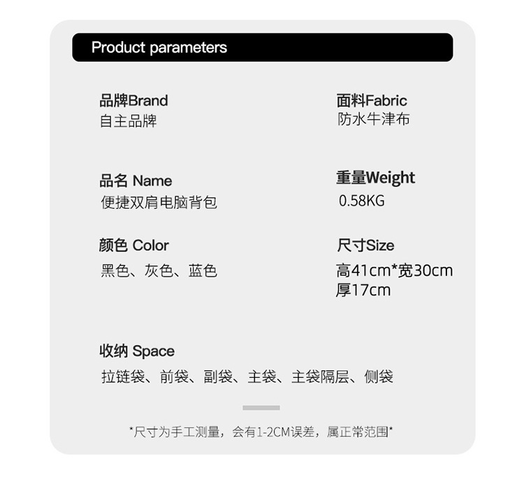 ビジネスリュックサック男性通勤短距離出張大容量ノートパソコンバッグ純色シンプルカジュアルリュックサック