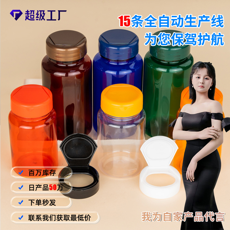 保健品小药瓶子包装密封鱼油胶囊分装翻盖式透明食品级pet塑料瓶