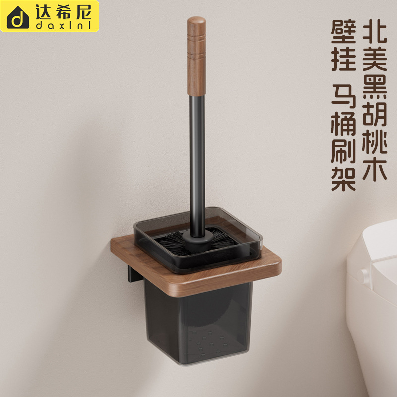 黑胡桃木浴室马桶刷架家用无死角清洁沥水厕所刷子壁挂式坐便器刷