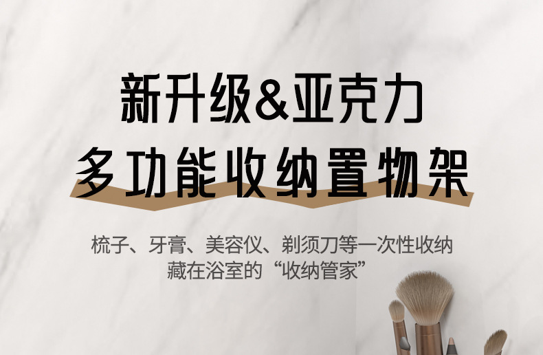 多目的収納ボックス壁掛け式穴なし眉筆化粧ブラシ収納棚浴室用の豪華な胡桃の木製棚
