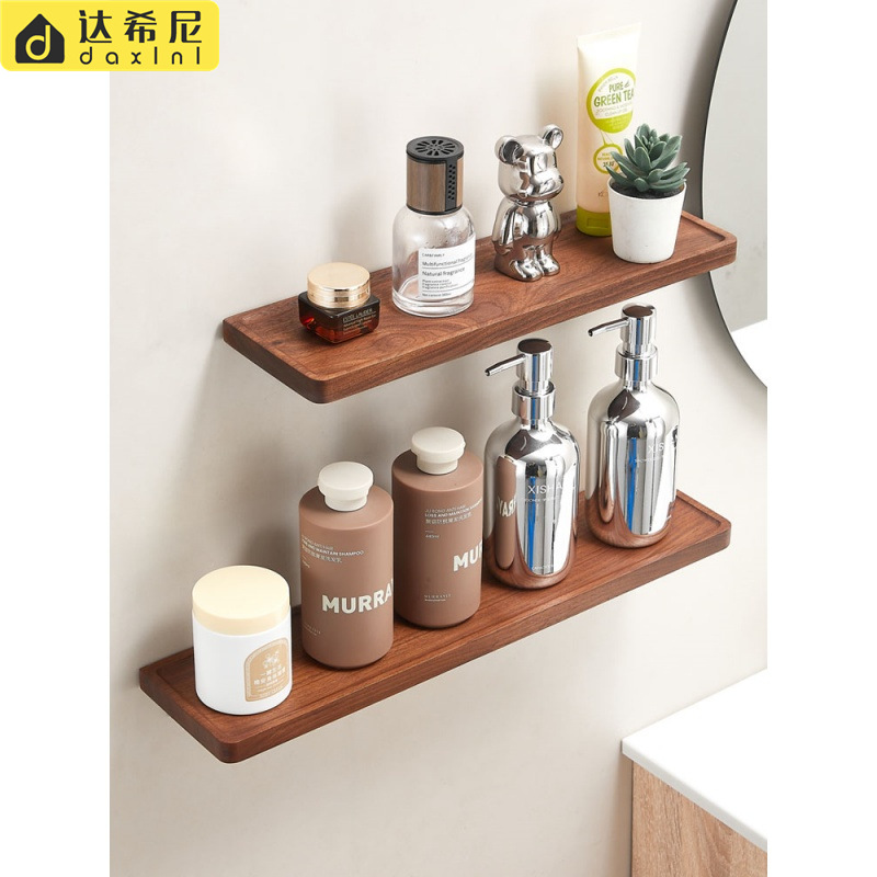 ウォールナット収納ラック新中国風ライト高級バスルーム無垢材ボード壁掛け収納バスルームボード