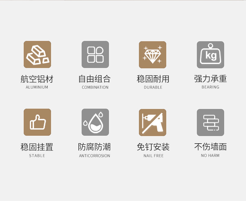 銃灰色浴室棚穴なし壁掛け収納棚工場直供トイレトイレ宇宙アルミトレイ