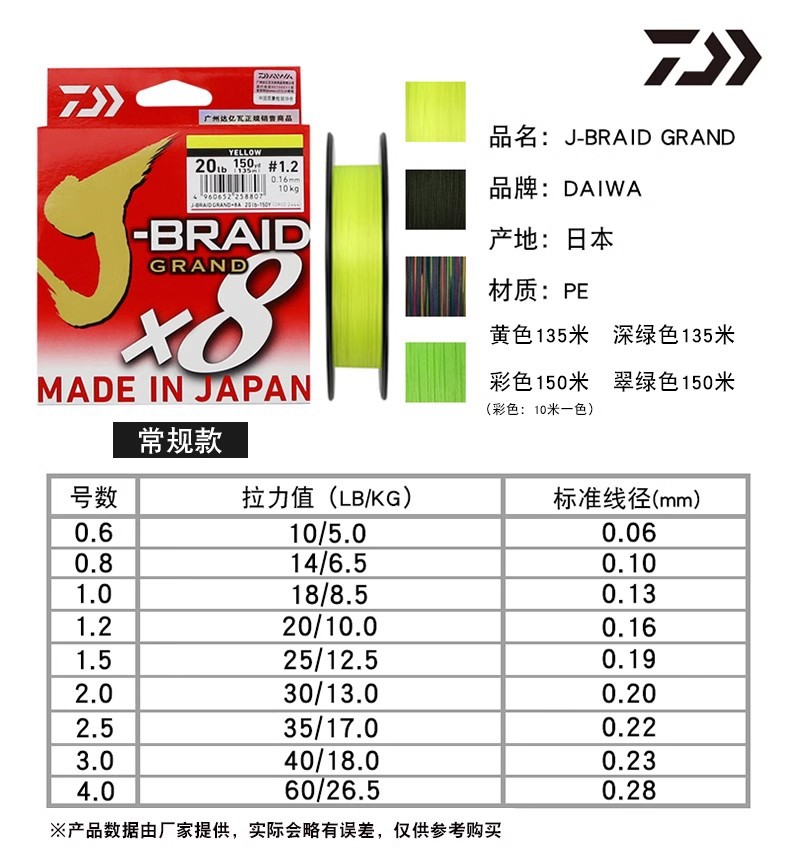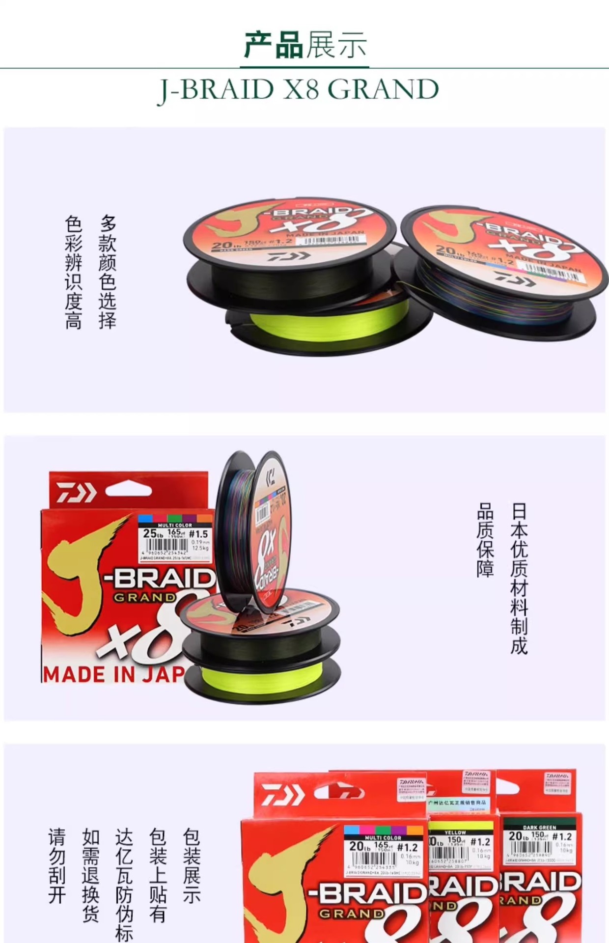 24種類のダイワ達億瓦J-BRAIDグランドx 8編pe線路亜線遠投耐摩耗性日本魚線