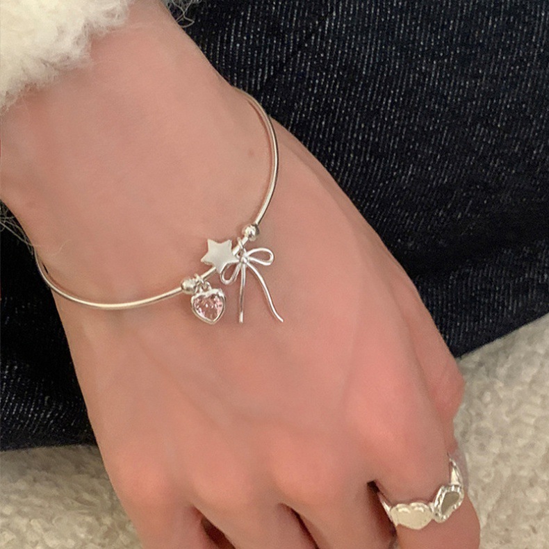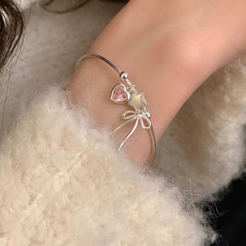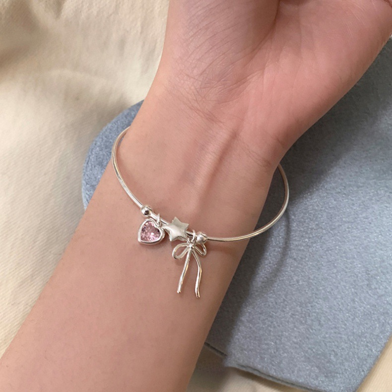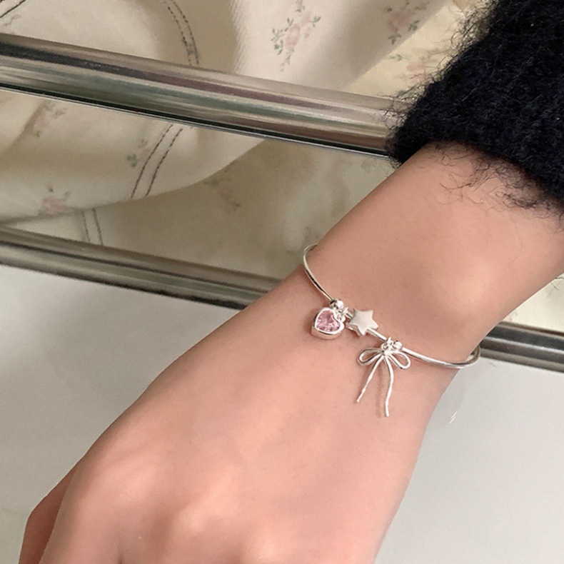 カラー ピンクの蝶結びの銀のネックレス,ピンクの蝶結びの銀のブレスレット,ピンクの蝶結びの銀のブレスレット,ピンクリボン蛇骨ネックレス