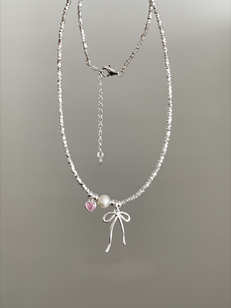 銀色のジルコンにダイヤモンドの蝶結びの真珠のネックレスを入れます。