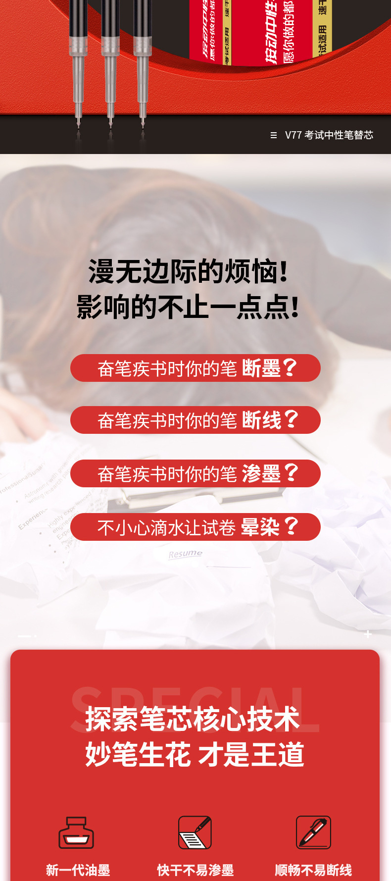 有力V77芯連中三元速乾試験中性芯0.5mm炭素ペン押しペン共通芯