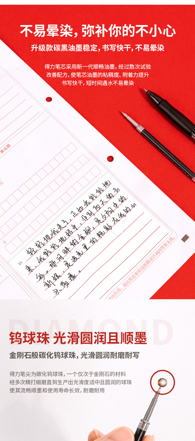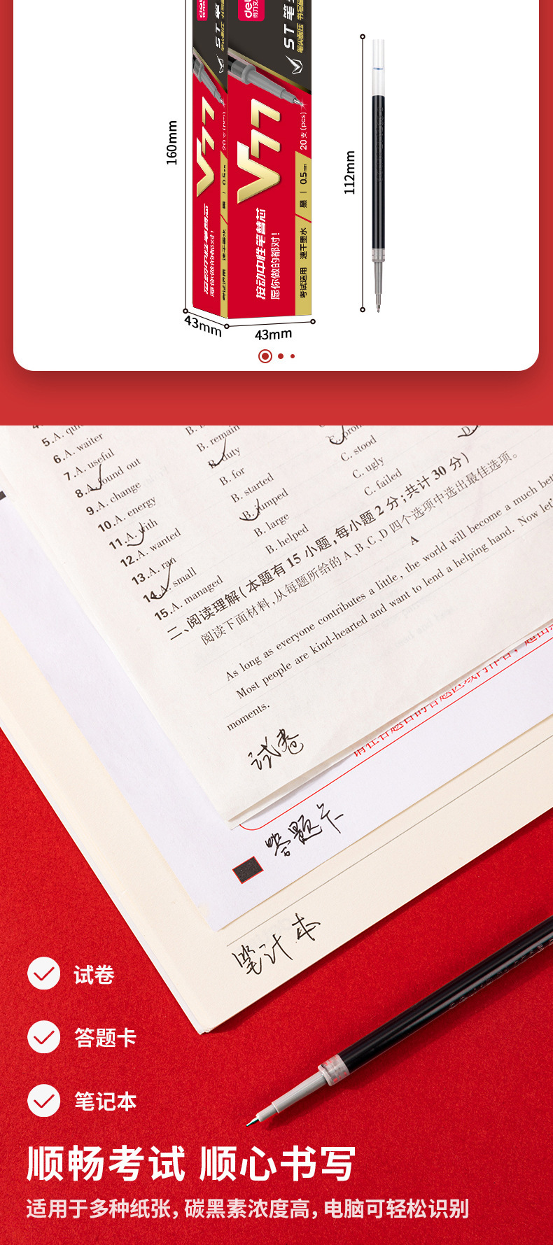 有力S08は中性ペンを押して、滑らかな0.5mmの水筆学生が黒いブラシで筆を書いた教師が赤いペンを採点した